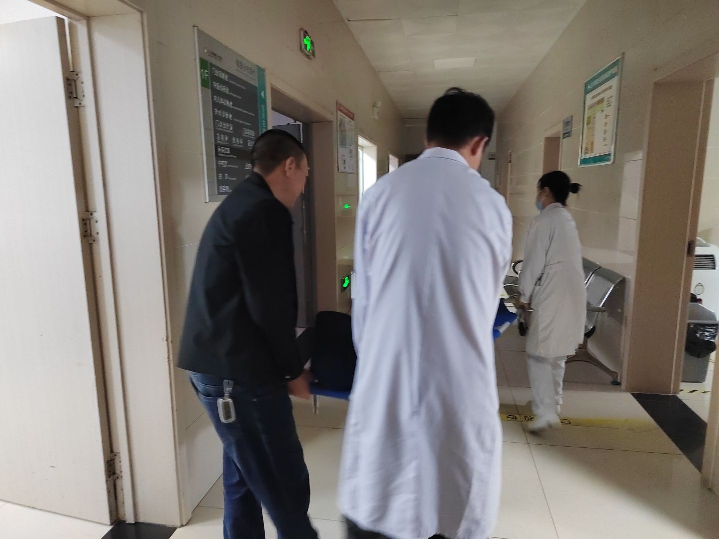 一名76岁老人因摔倒导致右股骨下端骨折,剧痛伴随活动受限,急需石膏固定与生命体征监测。门诊医护刘华、李茜茜迅速响应,凭借娴熟的技术完成紧急处置。然而,当患者需转运至影像科复片时,平稳抬运需四人协同的难题突显——除两名医护和一名陪护家属外,还差一人。正在这时,药剂科鲁珉途经现场,毫不犹豫加入其中。四人躬身托举、步调一致,以稳固的“人力担架”将患者平稳移送。