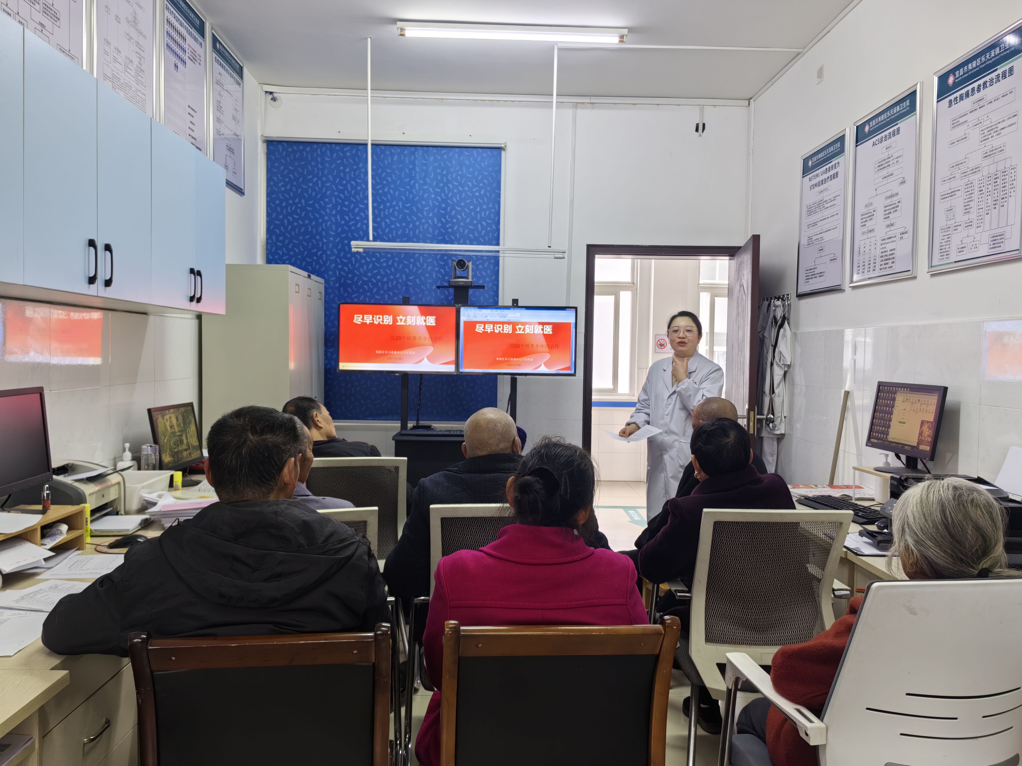面向住院患者,卫生院在病区组织卒中防治专题宣教。医生结合真实病例,生动讲解卒中发病机制、高危因素与早期症状,重点强调“时间就是大脑”的救治原则,提醒患者与家属如出现肢体麻木、言语不清、视力模糊等表现须立即就医。课堂互动环节,医护人员逐一解答患者在治疗、护理、饮食等方面的疑问,并为每人制定针对性康复计划。“讲座非常实用,原来对卒中不了解,现在清楚该怎么防、怎么救了,对我们康复帮助很大。”一位住院患者表示。