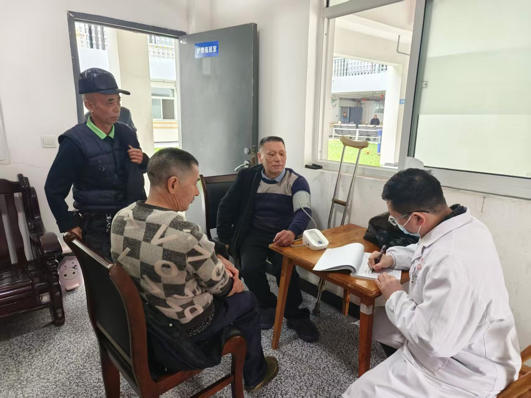 卫生院医疗团队主动走进镇福利院,将健康服务送到老人身边。医护人员耐心为老人们测血压、血糖,进行心肺听诊与腹部触诊,结合既往病史与身体状况,提供个性化的健康指导。“大妈,您血压偏高,记得清淡饮食、规律服药”“大爷,您血糖控制得挺好,要继续保持”,一句句叮嘱传递着关切与专业。活动现场还发放卒中防治与老年保健资料,开展知识答疑,并手把手教学血压自测与简易康复动作,帮助老人在互动中提升自我健康管理能力。