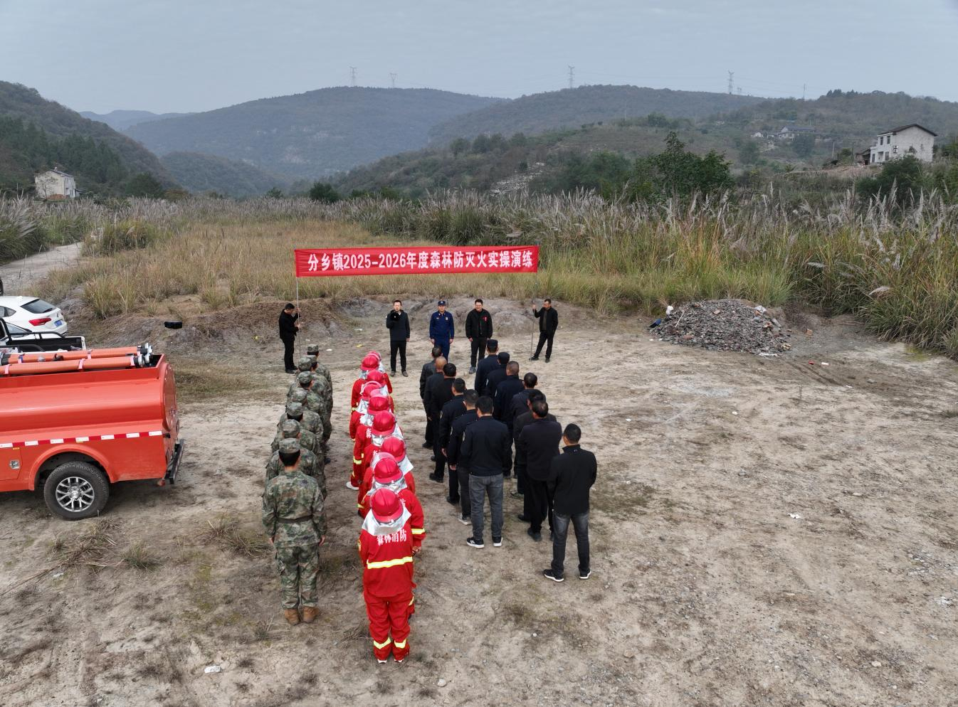 为全面提升森林火灾应急处置能力,11月14日,分乡镇邀请区消防救援大队教官在普溪河村河坝区域组织2025-2026年度森林防灭火实操演练。镇武装部牵头组织镇森林防火应急扑火队员参演。