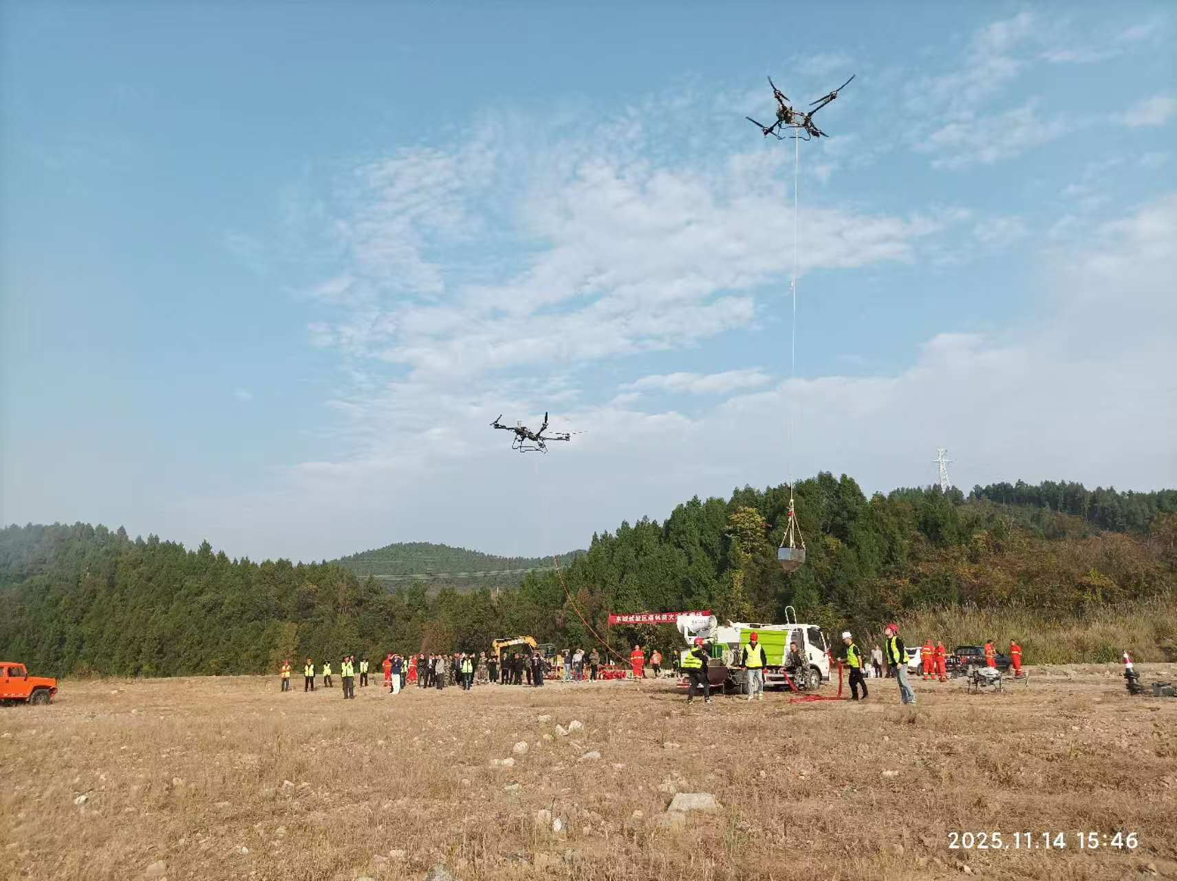 随后,现场采用“实操+观摩”模式,模拟新桥边村一组林区突发火情,接到报警后,应急指挥部迅速启动应急预案,各工作组闻令而动、各司其职,有序开展演练,运用无人机技术,实现高效快速扑灭森林火灾,确保森林资源和重点防护目标以及人民群众生命财产安全。