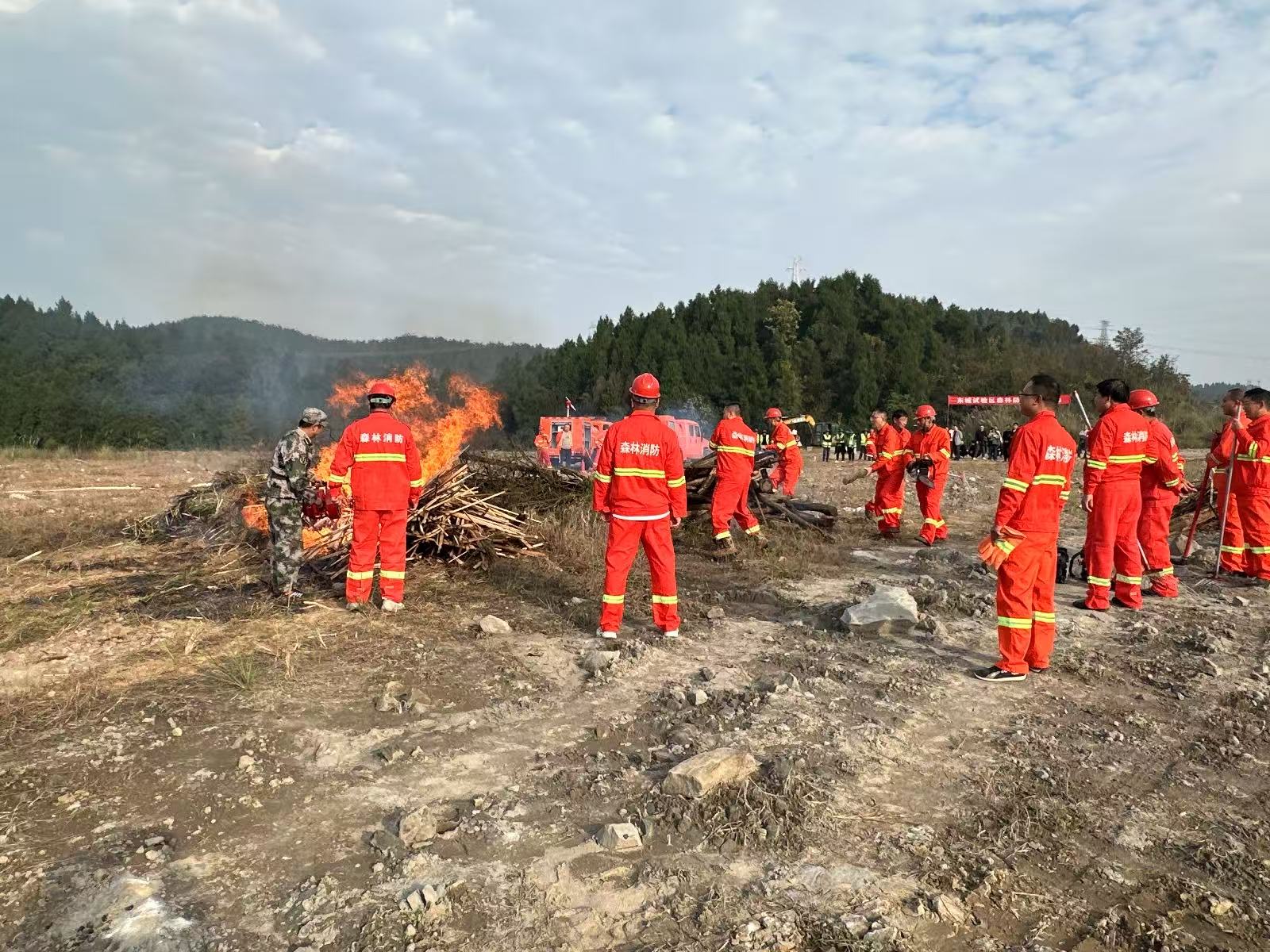 11月14日,东城试验区组织各办(中心)、公安民警、综合执法人员、各村(社区)分管负责人、油锯突击队员、城区巡护员、护林员和新桥边村部分党员群众共70余人开展2025-2026年度森林防灭火应急演练暨技能培训活动。