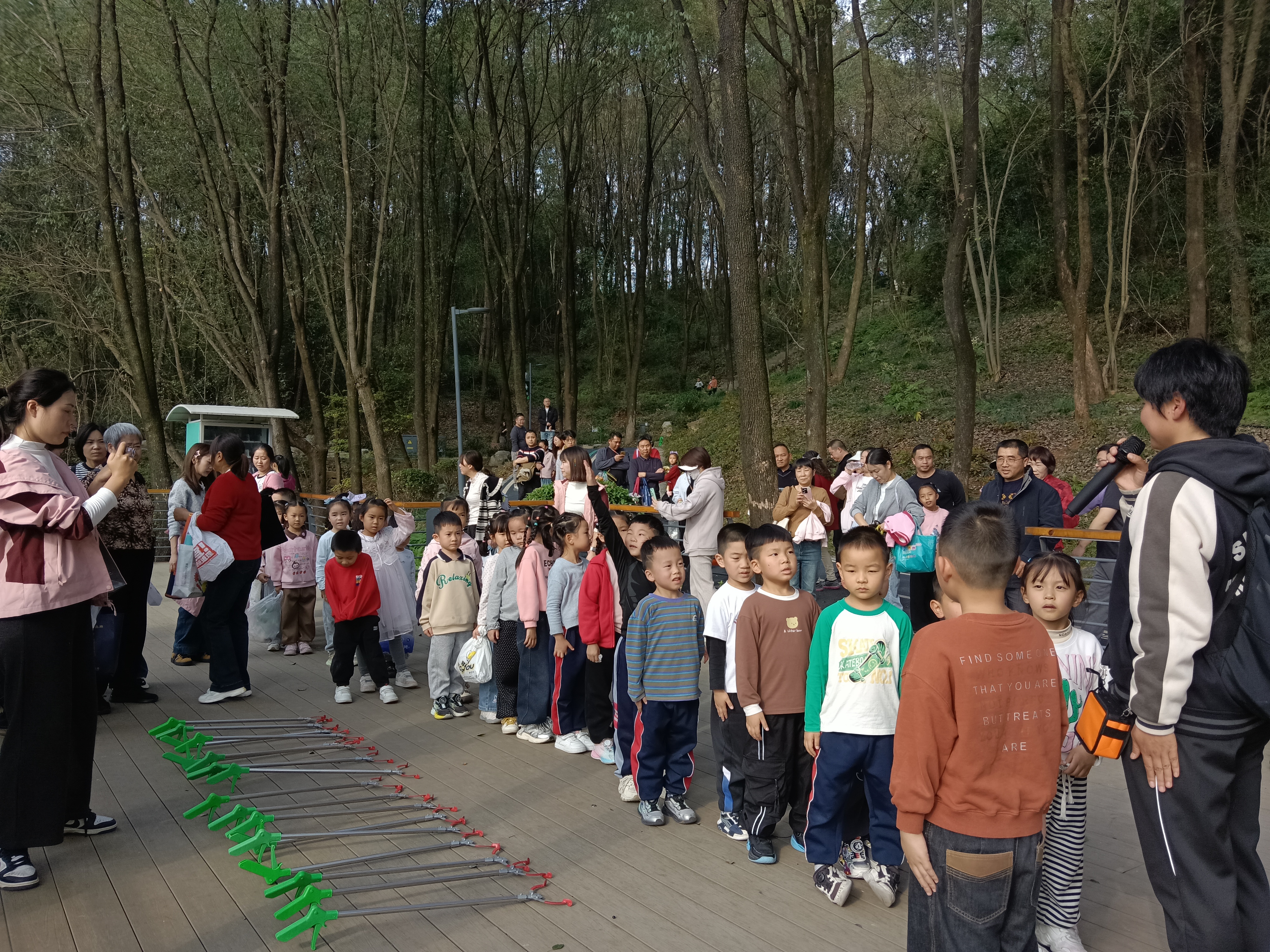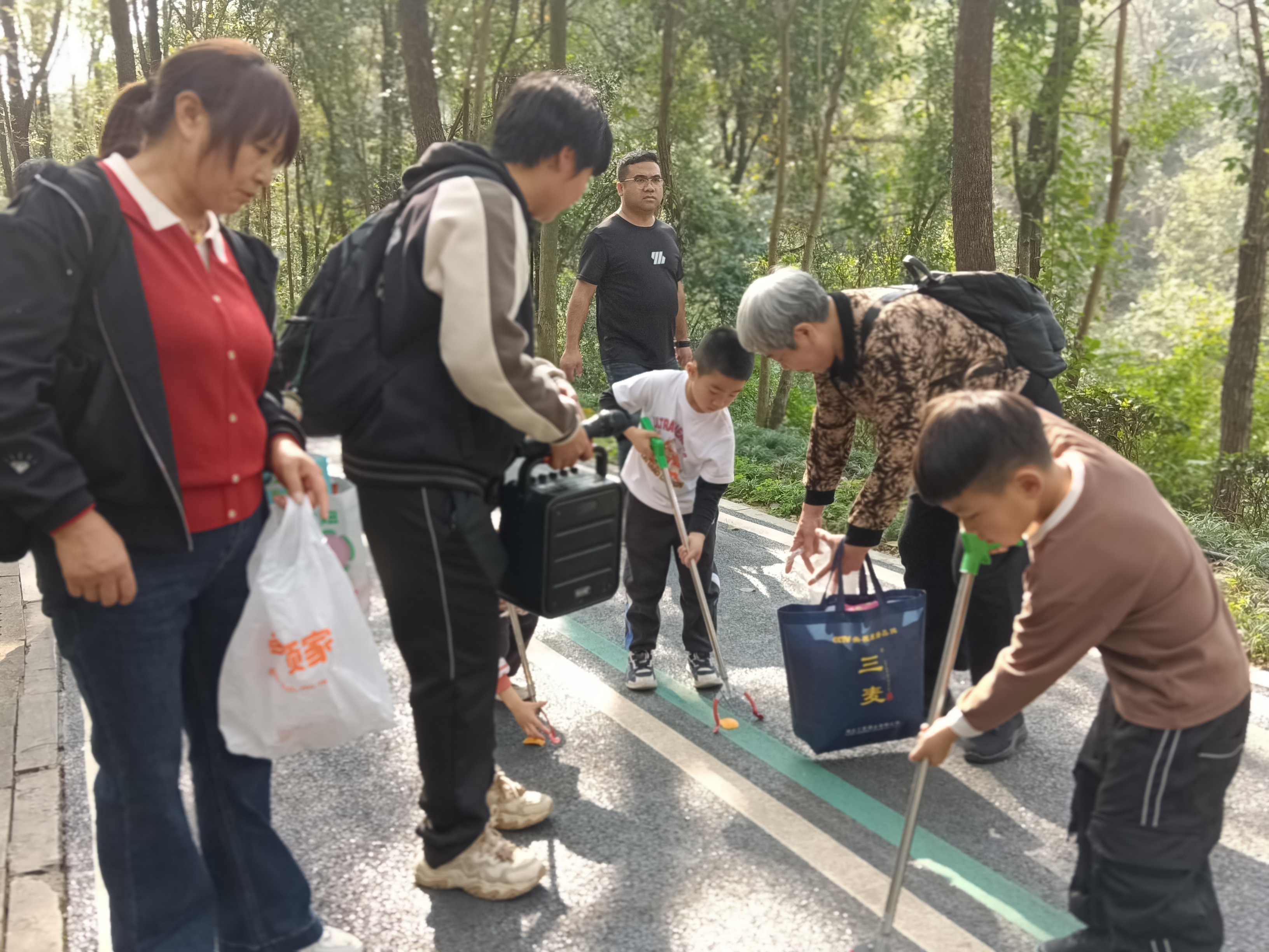 随后的净山行动中,大家手持垃圾袋、夹子等工具,分组沿森林公园步道出发。大家弯腰俯身,仔细捡拾沿途的塑料瓶、食品包装袋、烟头、纸屑等各类垃圾,不放过任何卫生死角。