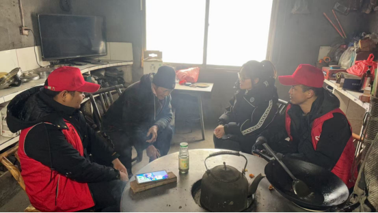 天刚亮,大家便带着融雪剂、铁锹等工具,奔赴村内主干道、陡坡弯道等易结冰路段作业,快速打通村民出行“安全通道”。随后,工作队顾不上休息,分头走访独居老人,查看取暖设备与生活物资储备,叮嘱老人注意防寒保暖和用电安全,及时帮老人解决实际困难。