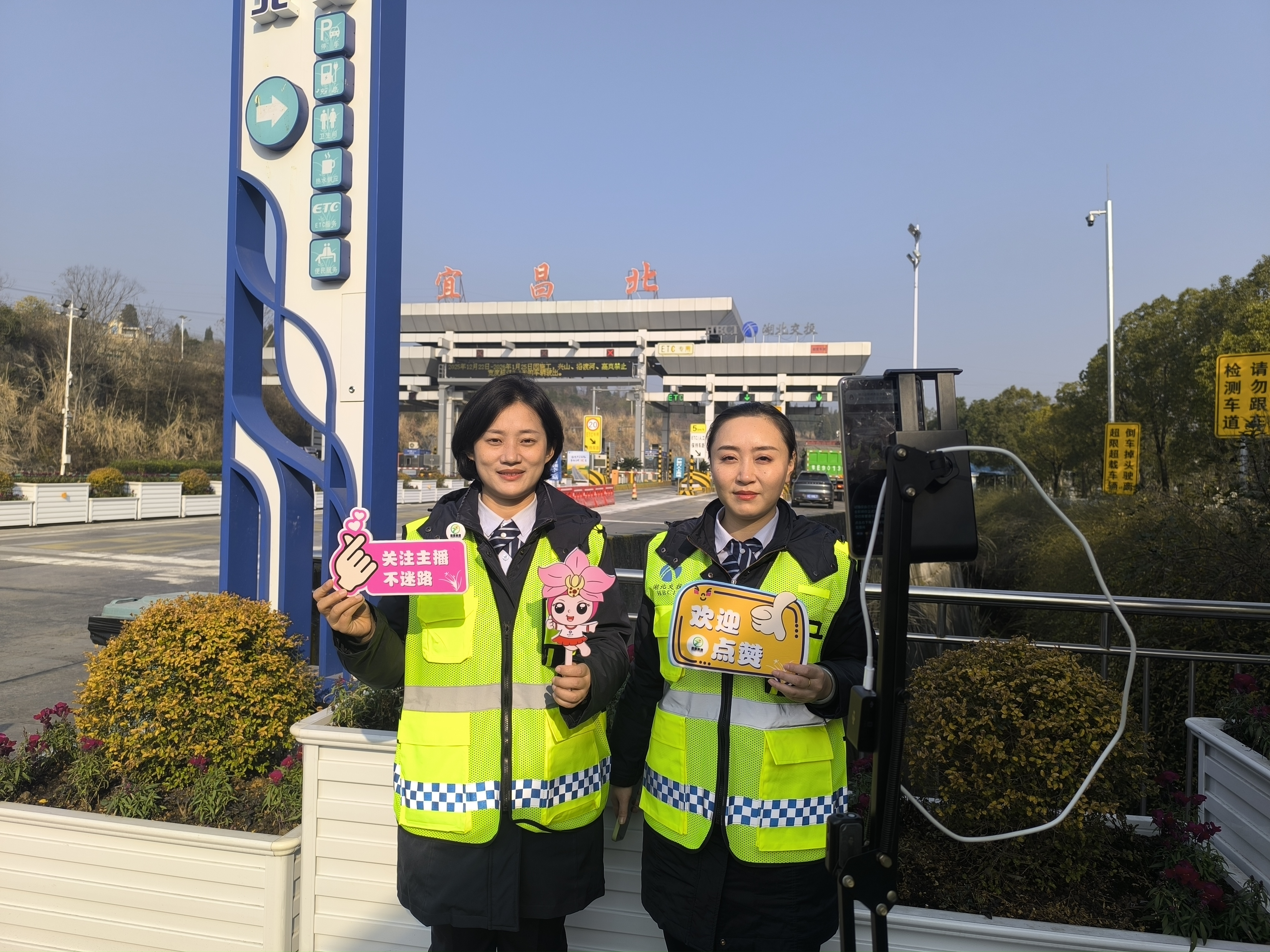 1月16日,宜昌北收费站现场开展“服务司乘、连接民心”为主题的直播活动,将高速公路服务从线下“窗口”延伸至线上“云端”。直播间全方位展示高速公路收费运营全流程,主播团队在线实时播报辖区内高速公路路况动态、天气变化趋势、交通管控措施等关键信息,细致解读节假日收费政策、ETC通行注意事项、旅游路线指引,耐心回应网友各类咨询,提供个性化出行规划建议,直播间内反响热烈。