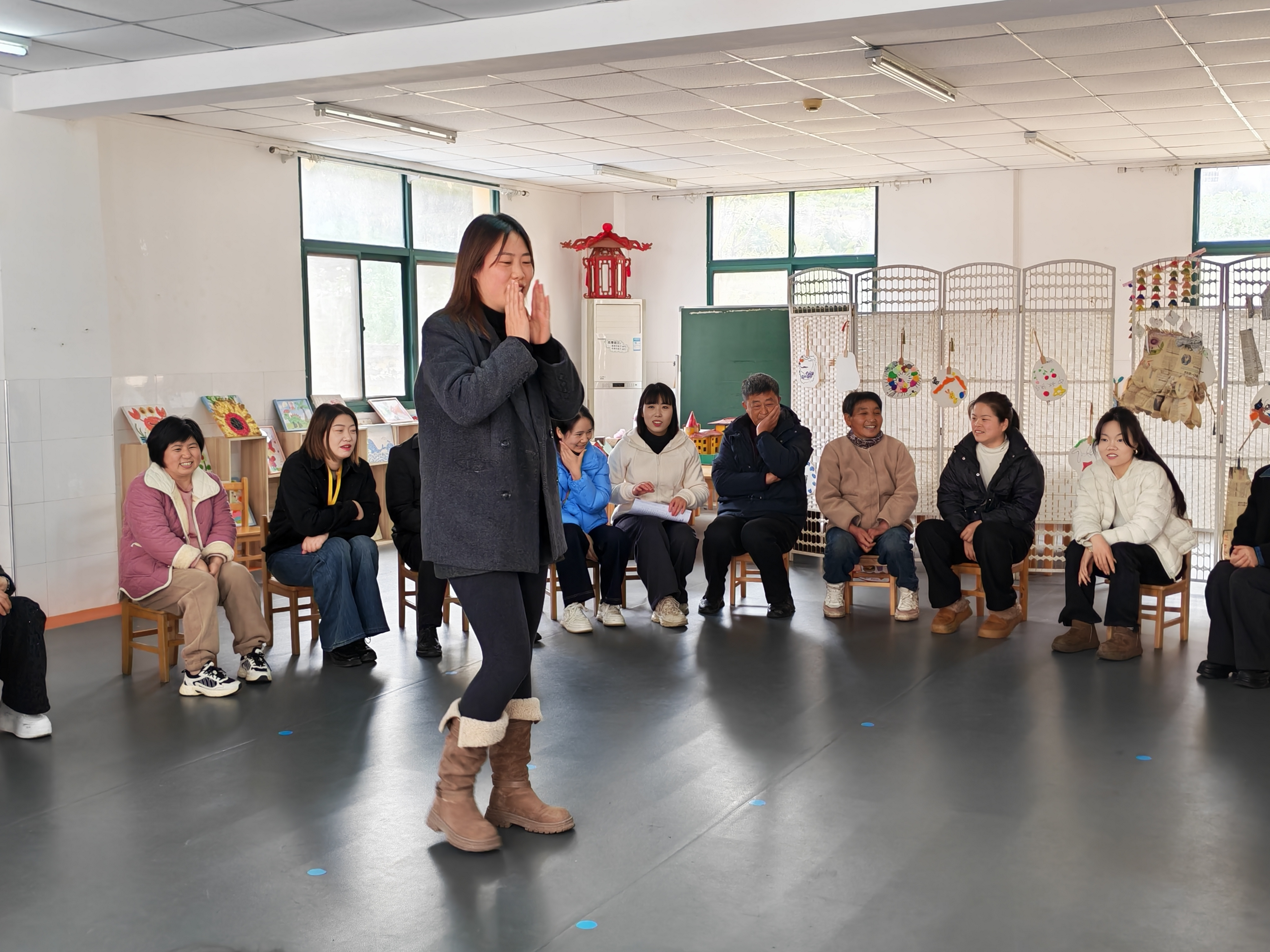 活动在趣味盎然的暖场游戏中拉开帷幕。《大风吹》《打破想“象”圈》等游戏迅速拉近了家长之间的距离,更让家长在亲身体验中感悟到沟通与信任在教育中的重要性。在随后的体验式互动环节,家长们围绕真实教育情境展开热烈讨论。小班聚焦“放手的爱”,探讨孩子发生矛盾或面对困难时,如何给予支持而非包办;中班则深入交流“当孩子不听话时,如何有效互动”,寻求从“控制”走向“合作”的沟通智慧;大班家长则围绕“幼小衔接”这一核心议题,从入学四个准备等方面分享了各自的成长规划与见解。