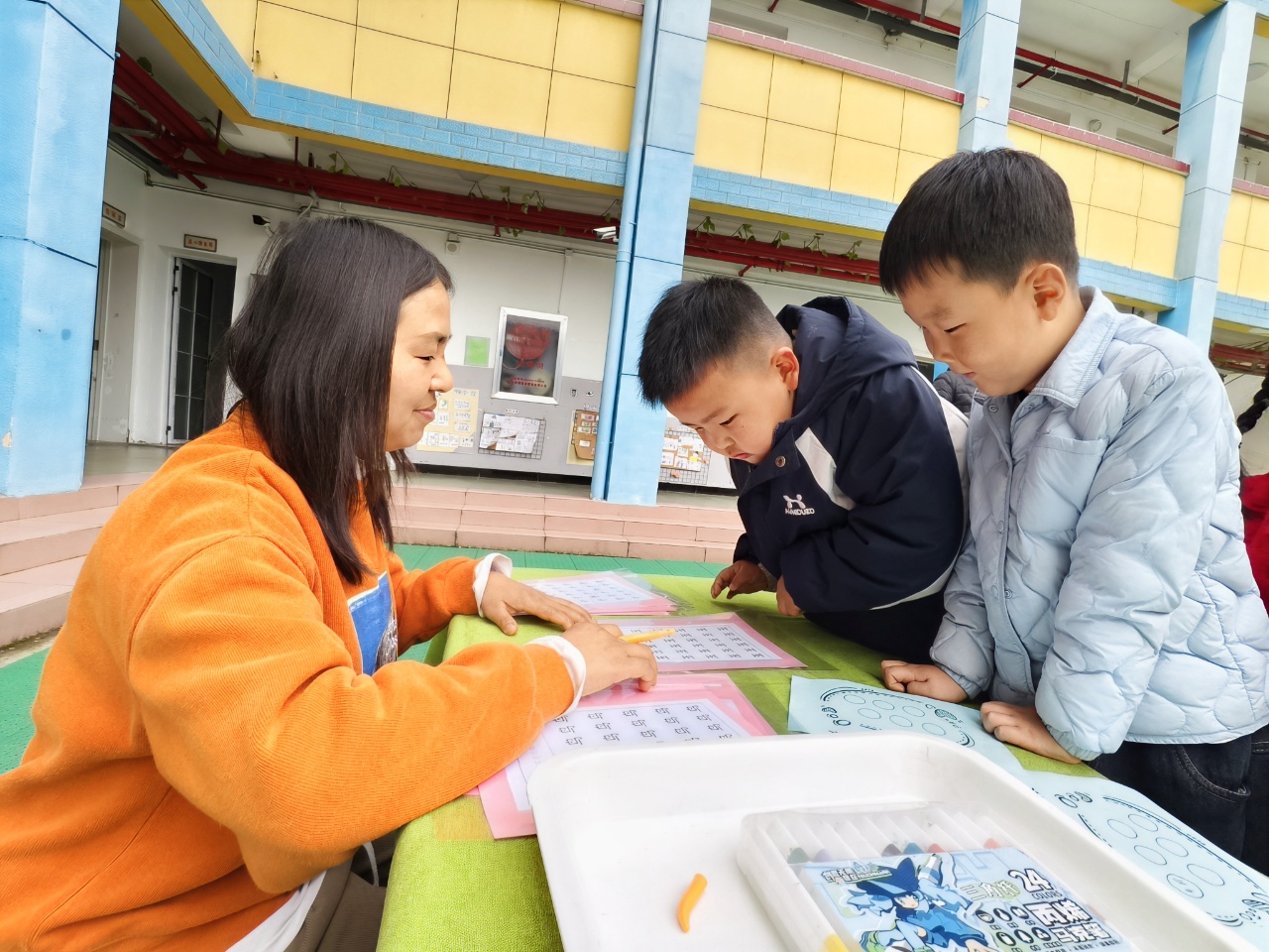 活动前期,幼儿园围绕汉字认知、字形结构辨识、象形文字感知等内容开展系列教学活动,为闯关活动奠定良好基础。活动现场设置“古诗找朋友”“小猫钓鱼”“木棍摆字”“连连看”“找不同”“看图说话”六大趣味关卡。孩子们手持闯关卡,依次参与挑战,在动手操作与合作互动中认读汉字、理解词义、锻炼语言表达能力。完成全部关卡后,孩子们还解锁“泥刻姓氏”隐藏任务,亲手制作专属汉字作品,在实践体验中感受汉字文化的独特乐趣。
