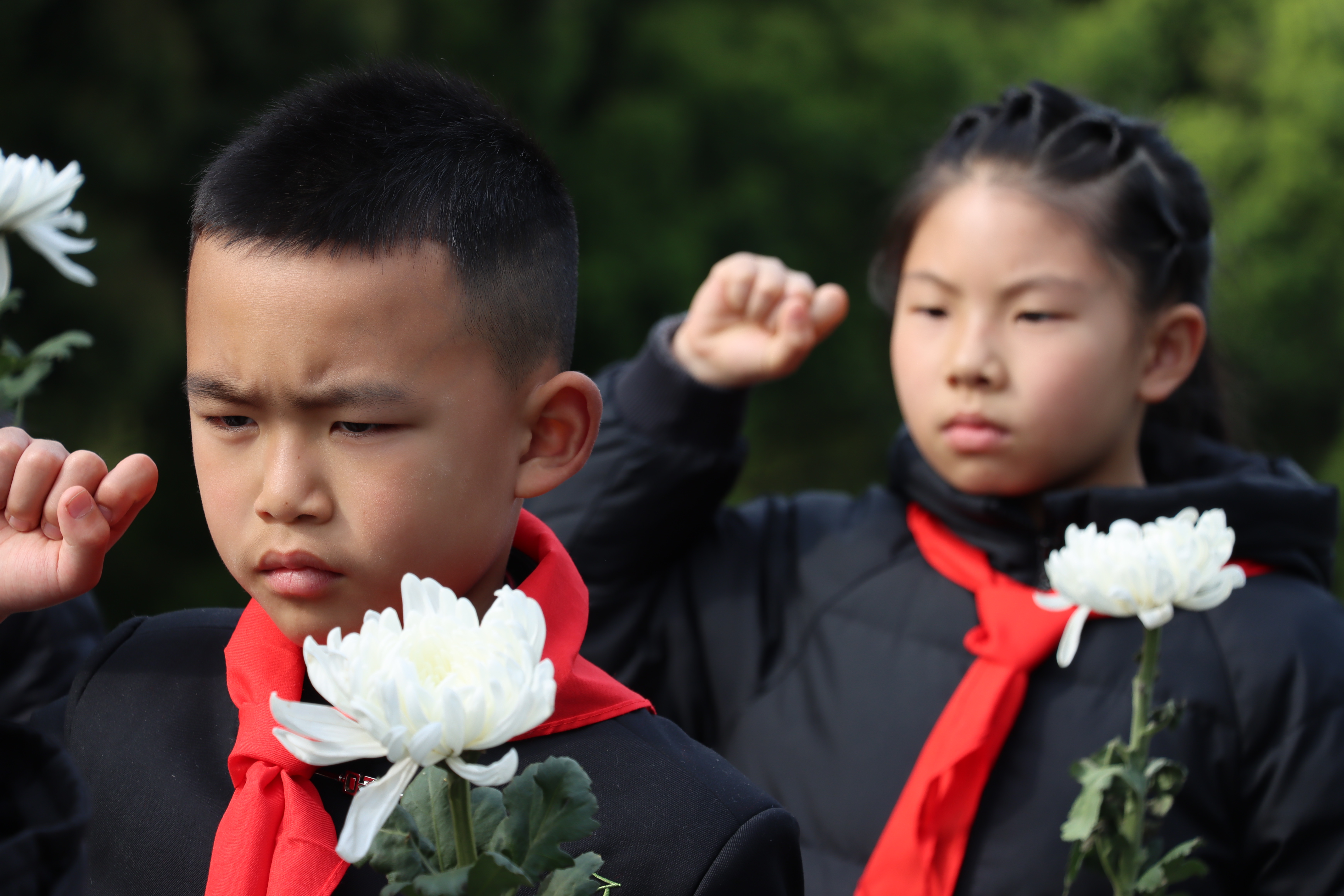 上午8时,祭奠仪式在庄严肃穆的氛围中正式开始。全体师生肃立,齐声高唱国歌,嘹亮的歌声在陵园上空回荡。随后,出队旗仪式举行,少先队员们齐唱《中国少年先锋队队歌》,并在队旗下庄严宣誓,重温入队誓词,铿锵誓言表达了继承革命先辈光荣传统的坚定信念。