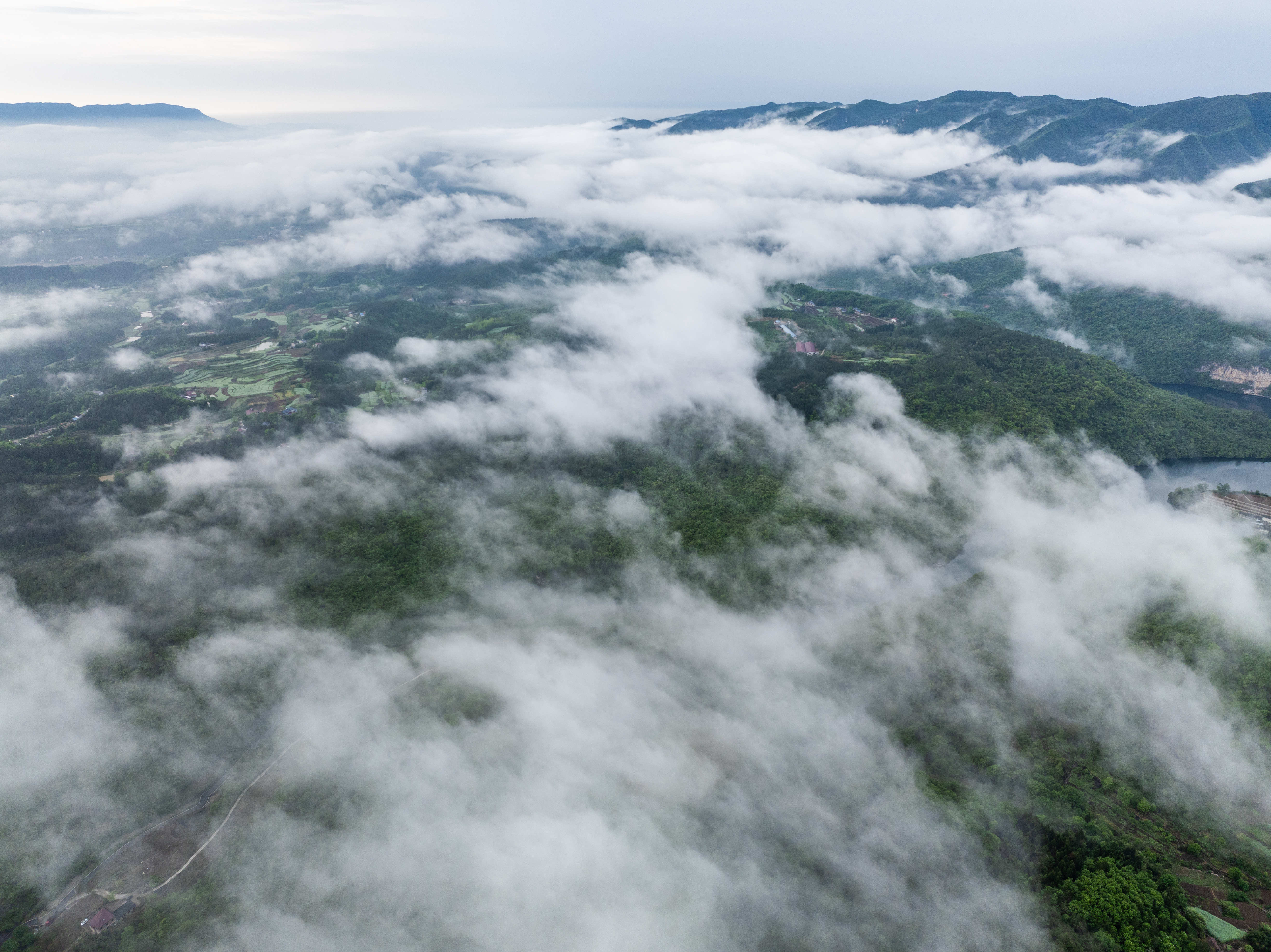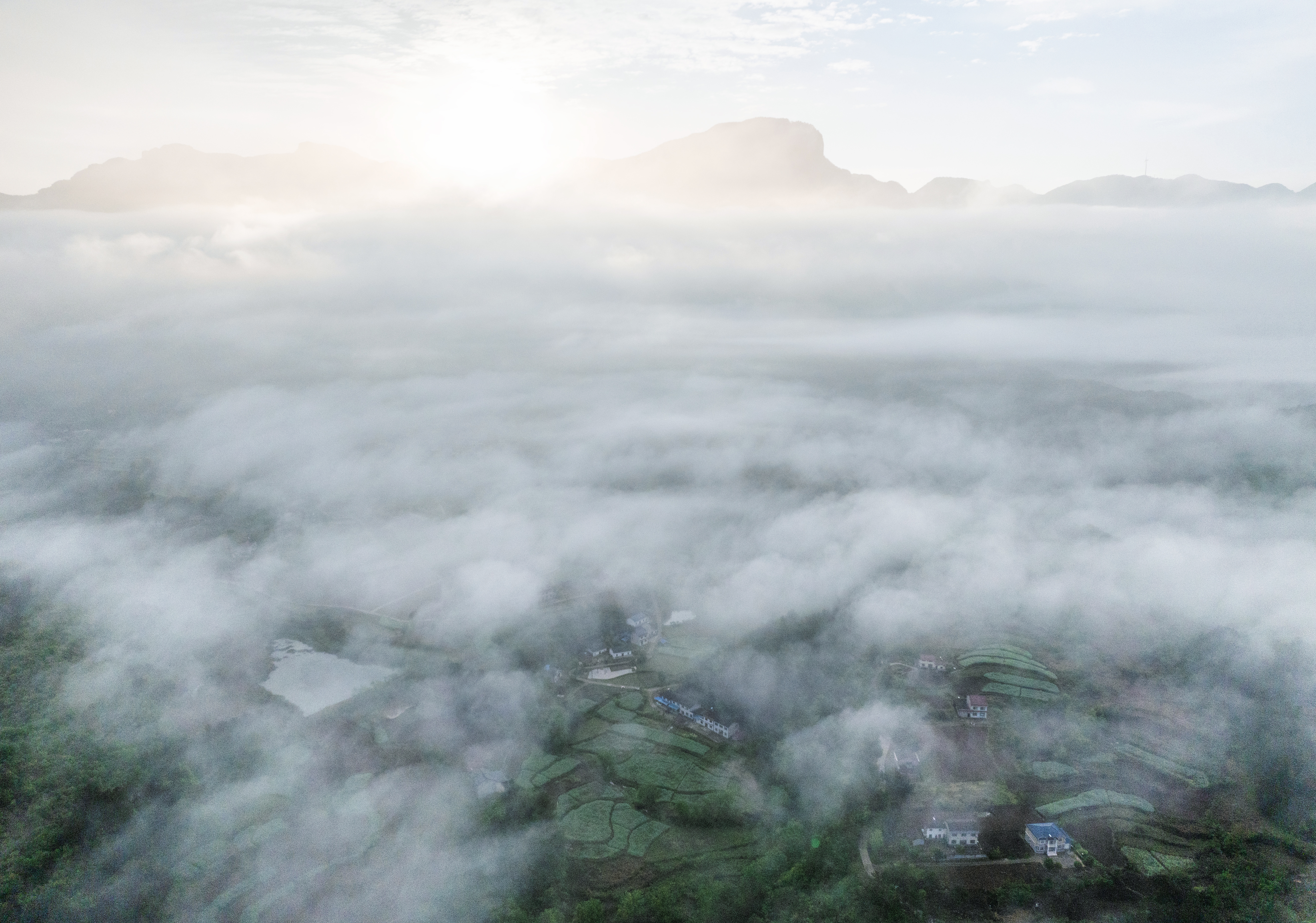 4月15日,夷陵区分乡镇南垭村山峦、村庄、田园云雾缭绕,仿佛是上天的神笔把大自然描绘成一幅春景图,令人陶醉,称绝。