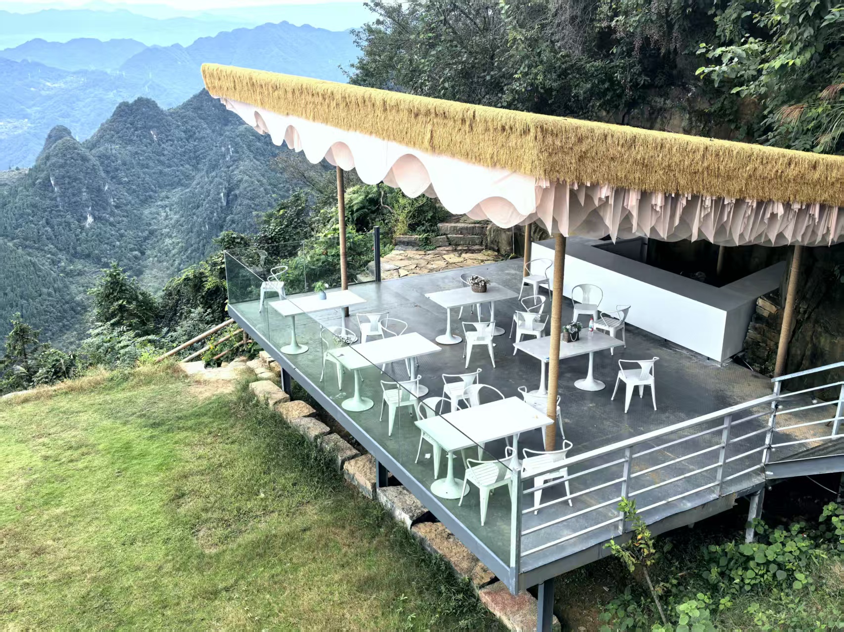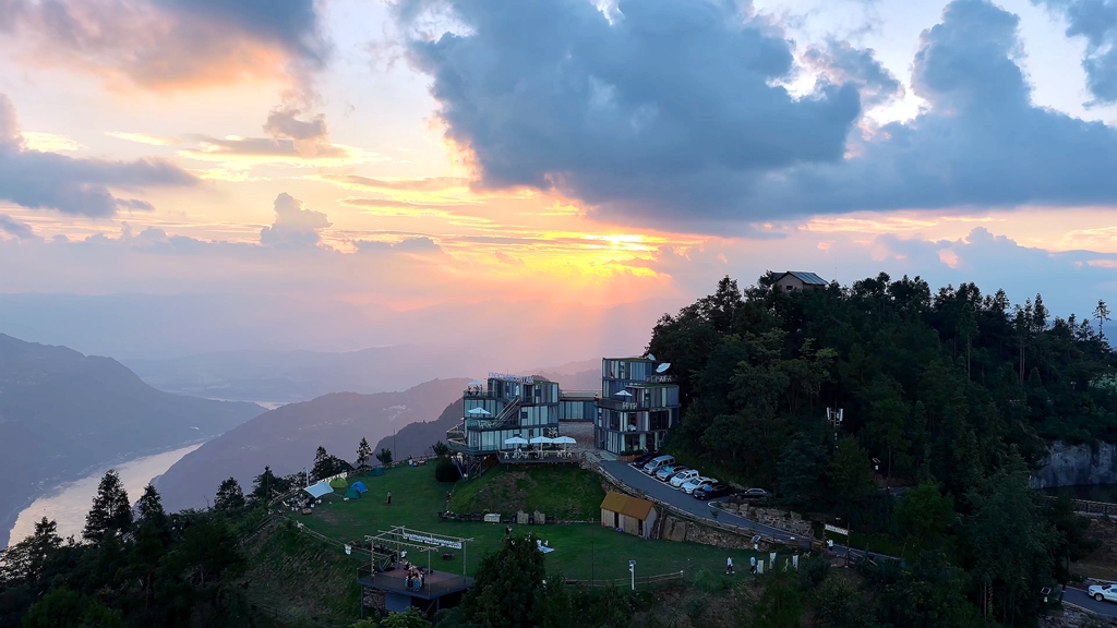 这家坐落于金刚山之巅的民宿,自带“地理优势”,极高的地势搭配毫无遮挡的开阔视野,成了观赏自然奇景的绝佳之地,每逢天气晴好,清晨推窗便能邂逅红日跃出云海的壮丽景象,白天凭栏远眺,峡江蜿蜒流淌的景致更是尽收眼底,随手一拍都是能刷爆朋友圈的风光大片。