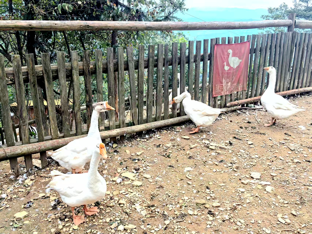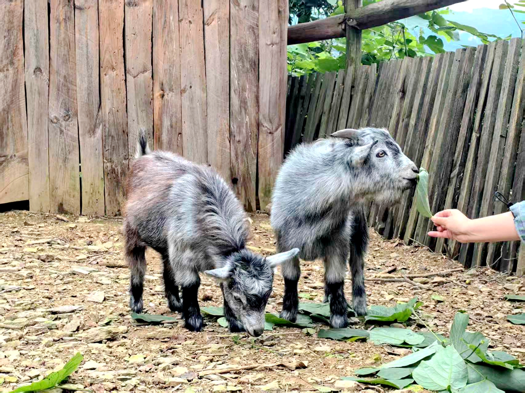 除了节庆活动,民宿从今年夏季便着手筹备的小型动物园,如今也已正式与游客见面。走进园区,两只小山羊正低头啃食青草,七只大白鹅偶尔发出几声鸣叫,一旁的围栏里,小香猪慵懒地晒着太阳。再往林间走去,两头梅花鹿正悠闲散步,见人靠近也不怯生。“搭建小动物园,就是想让游客能更亲近大自然,尤其是带孩子的家庭,能有更丰富的互动体验。”杨健补充道。