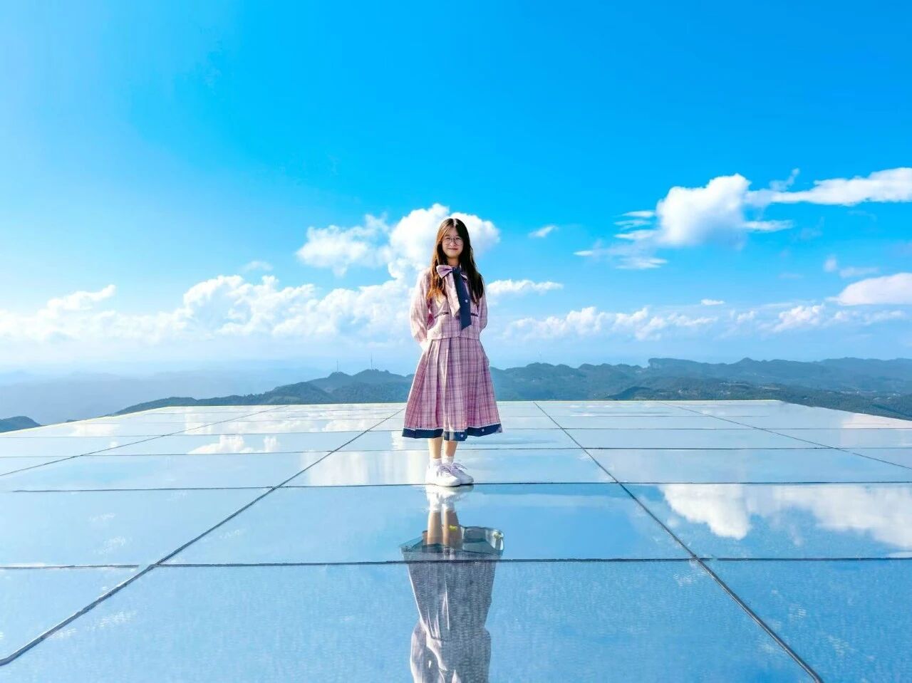度假区新推出的“天空之镜”观景平台也成为游客打卡热点。这个位于海拔1200米云中草原上的360度通透镜面观景台,让游客置身云端,欣赏脚下漫无边际的草甸与绝美的自然风光。