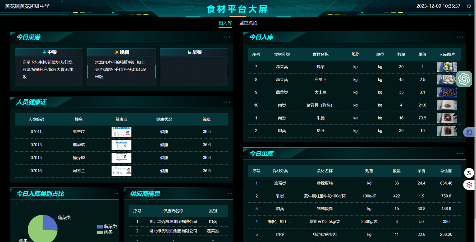 与此同时,互联网+明厨亮灶接入AI视频分析盒,与市场监督管理部门、城市大脑对接,对食堂关键环节实时监控预警;智慧监管平台打通数据壁垒,形成监管闭环,推动食堂从“被动监管”转向“主动合规”。