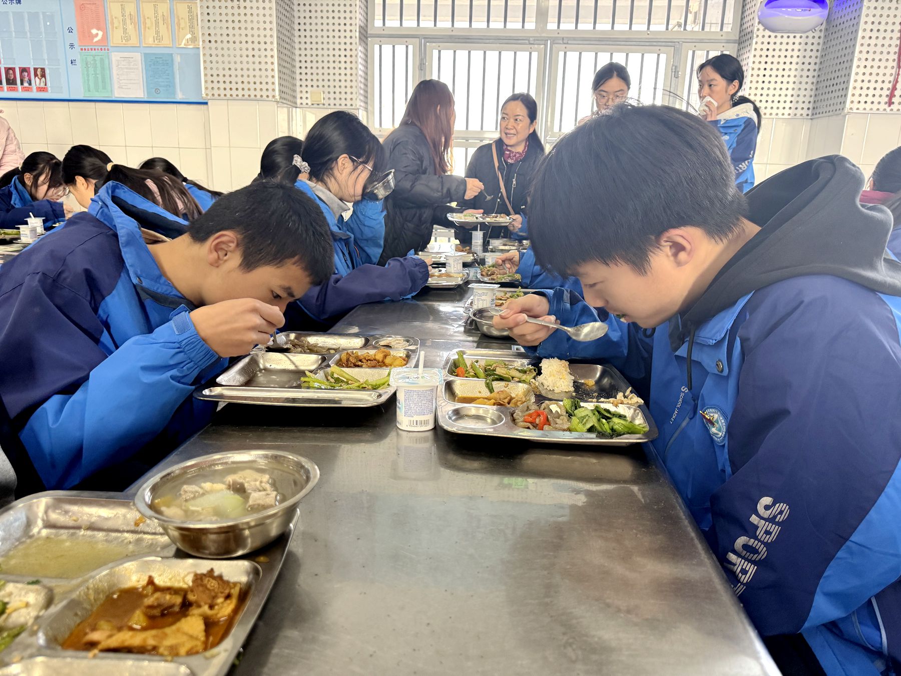 “每周可以去学校陪餐,食材很新鲜,监控里还能看到后厨很干净,孩子在这里吃得很放心。”学生家长黄琴在陪餐后满意地说道。