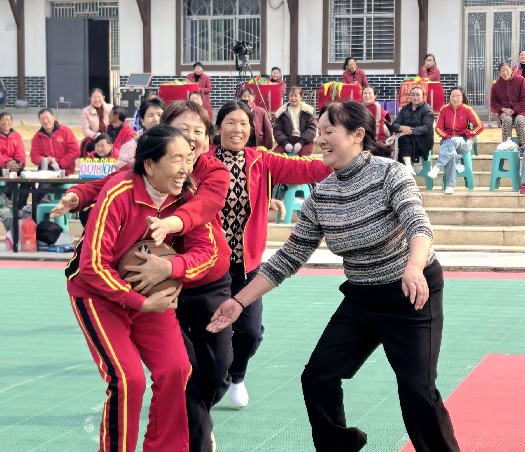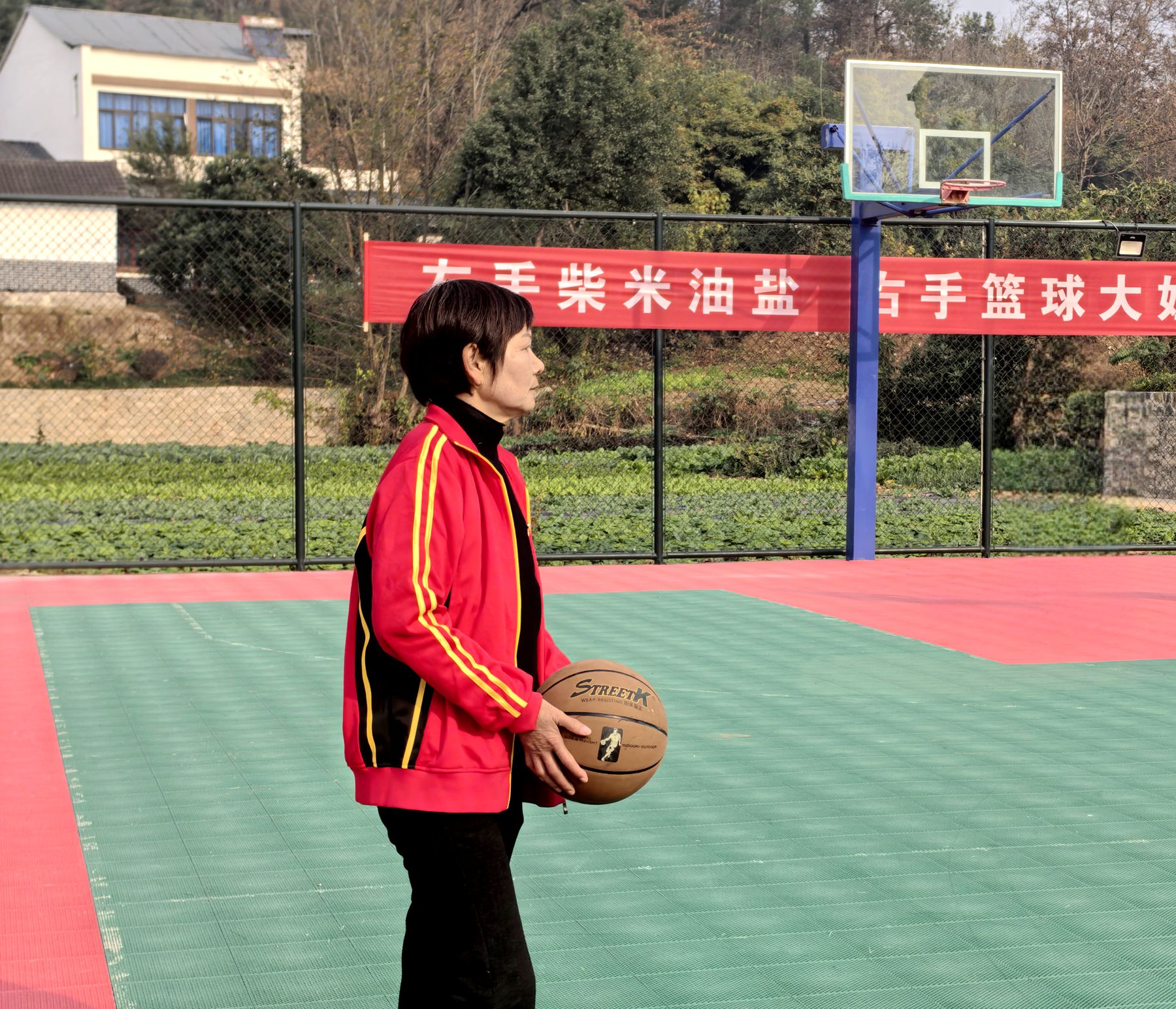 “平时在家种田、带娃,围着灶台转,很少有运动机会。村里组织这场篮球赛,让我放下琐事,全身心都放松了,特别开心。”金和村三组球员陈国静说。