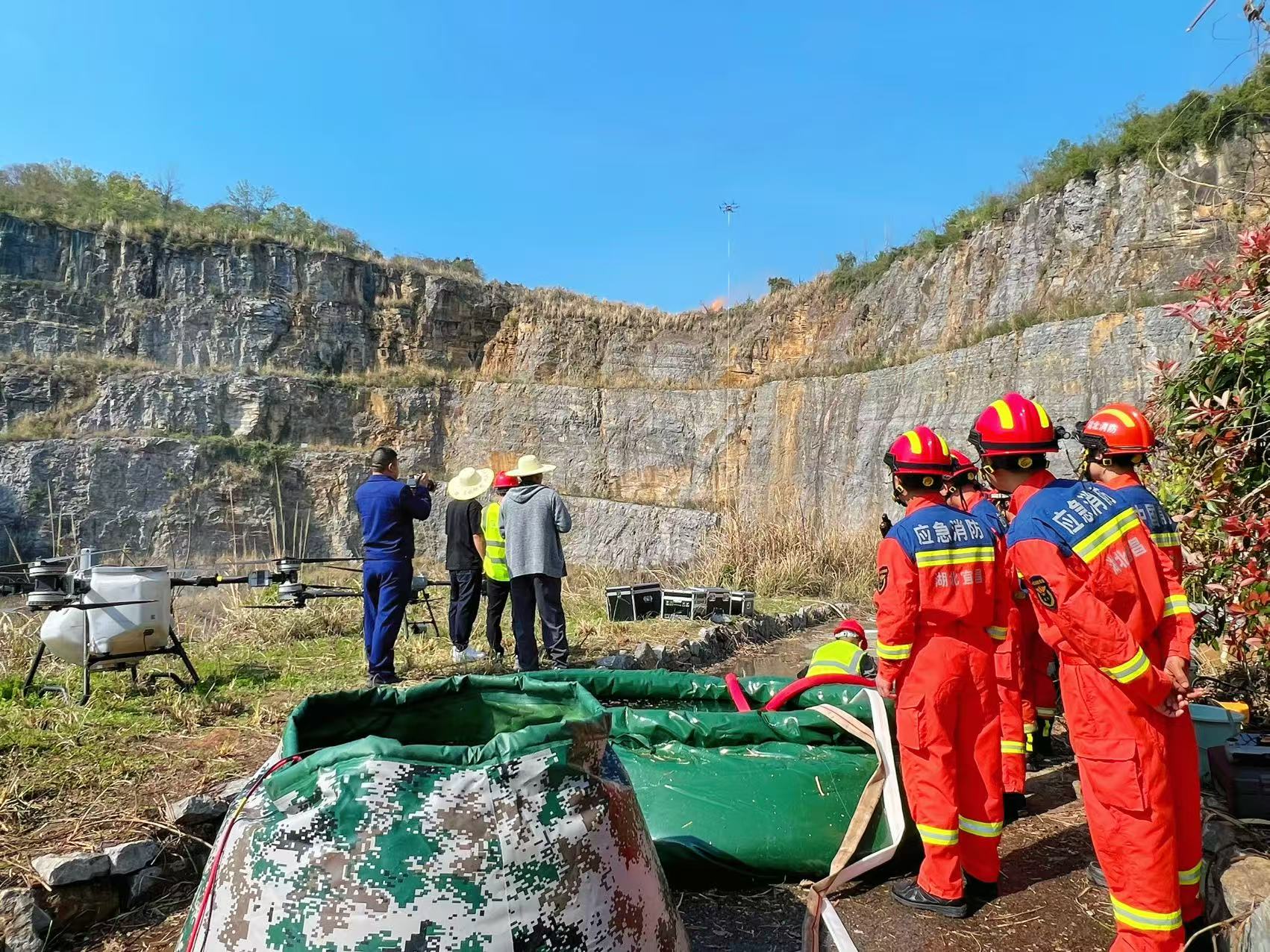 4月1日,夷陵区在黄花镇举办高扬程水泵与大载重无人机协同森林灭火演练。