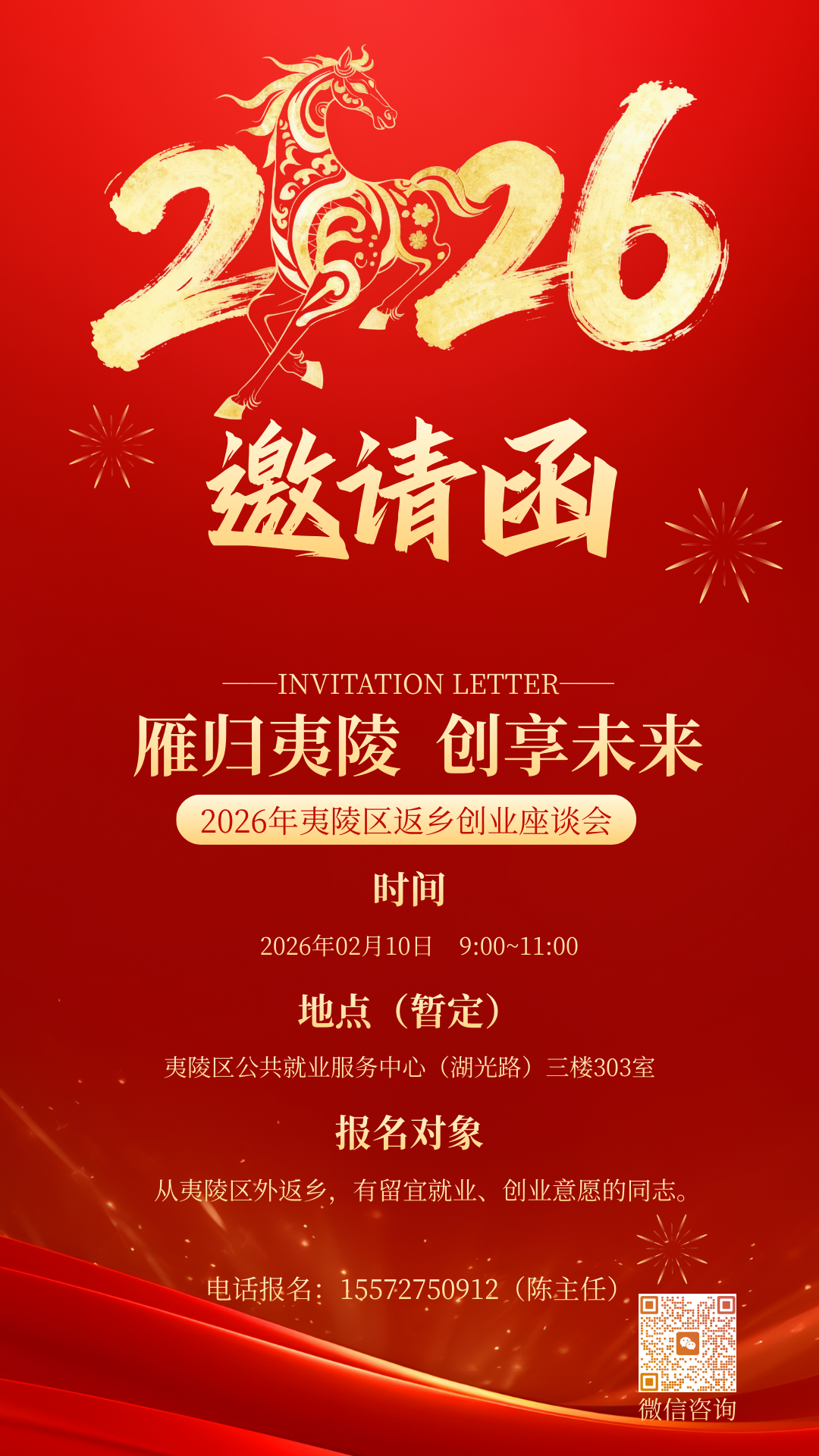 如今的宜昌,如今的夷陵,同样也有很好的就业机会以及创业环境。2月10日,夷陵区举办2026年返乡创业座谈会,诚邀大家来一起叙乡情,聊风口,读政策,希望能帮大家在家乡成功就业、创业。