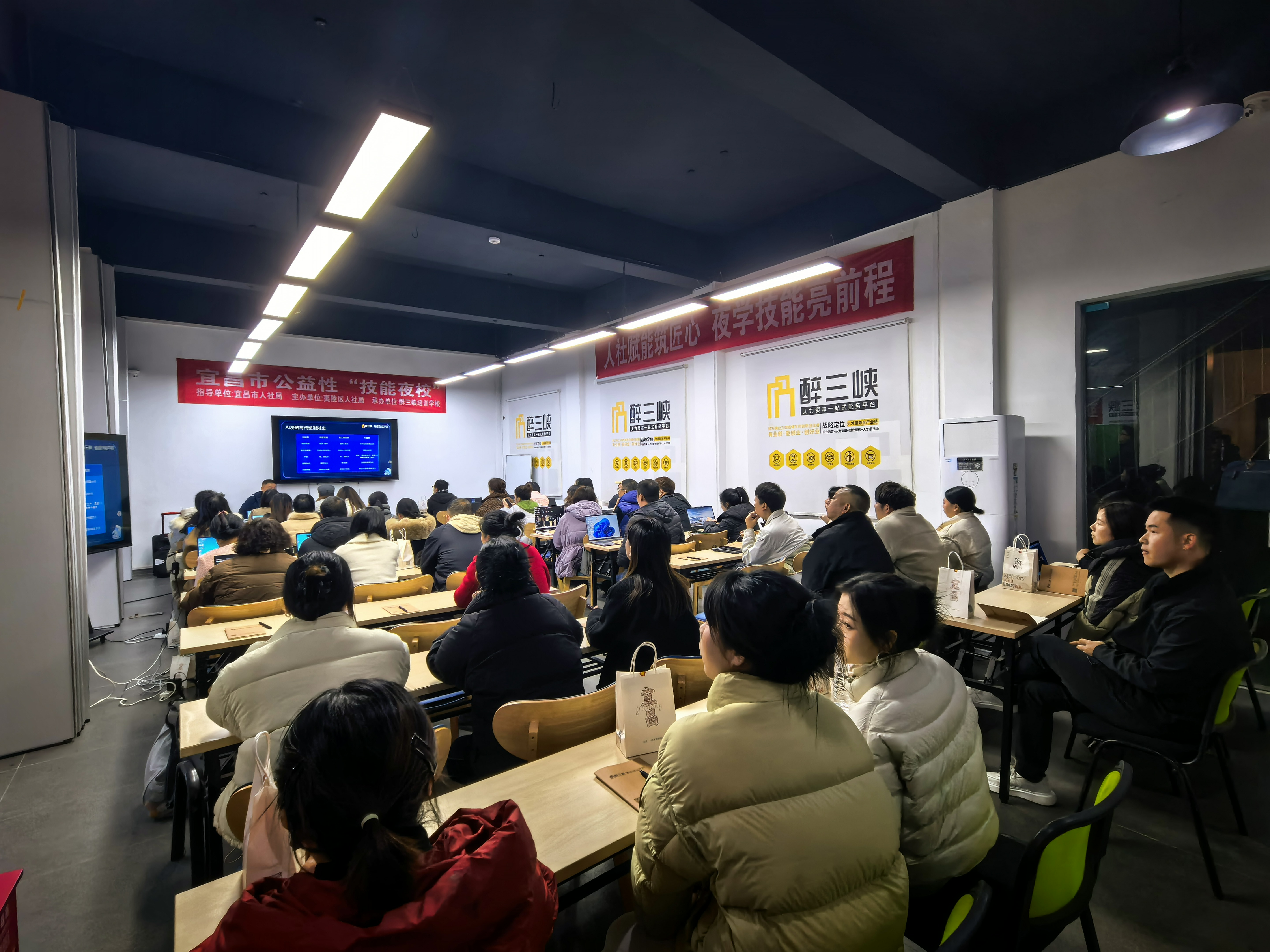 2月28日晚,夷陵区家门口技能夜校之“AI漫剧制作”视听公益课在夷陵区醉三峡电子商务创业孵化园拉开帷幕,100余名离校未就业高校毕业生、返乡就业人员、网络创业青年及待业女性踊跃参训。该培训为宜昌市首创,旨在抢抓人工智能与短视频经济风口,探索“技能培训+数字文创+灵活就业”新路径。
