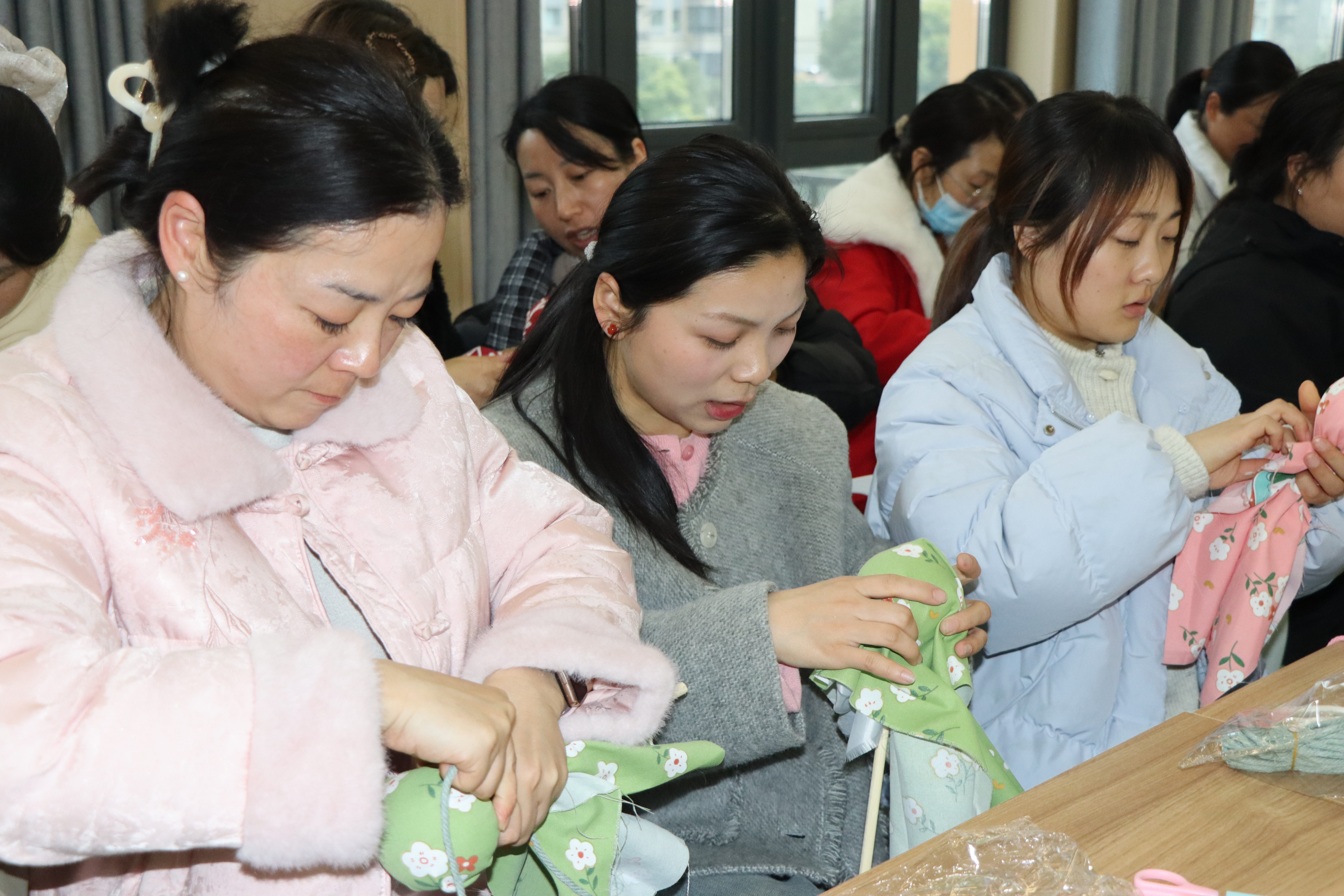 活动中,园长秦兴美向全体人员致以节日问候,肯定大家以爱心与责任守护幼儿成长、以专业助力园所发展的奉献精神,鼓励老师们劳逸结合、悦己悦心。在艾草锤制作环节,工会组长秦芬细致讲解制作步骤与技巧。老师们兴致盎然,围坐一起相互协助、交流心得,穿针引线、压实艾草、精心装饰。原本普通的布料与艾草,在一双双巧手中变身精致实用的艾草锤,承载传统民俗意涵,也饱含手作温度。制作完成后,老师们拿起专属艾草锤互相捶肩敲背,在欢声笑语中舒缓了日常工作的疲惫,拉近了同事间的距离,增强了团队凝聚力。