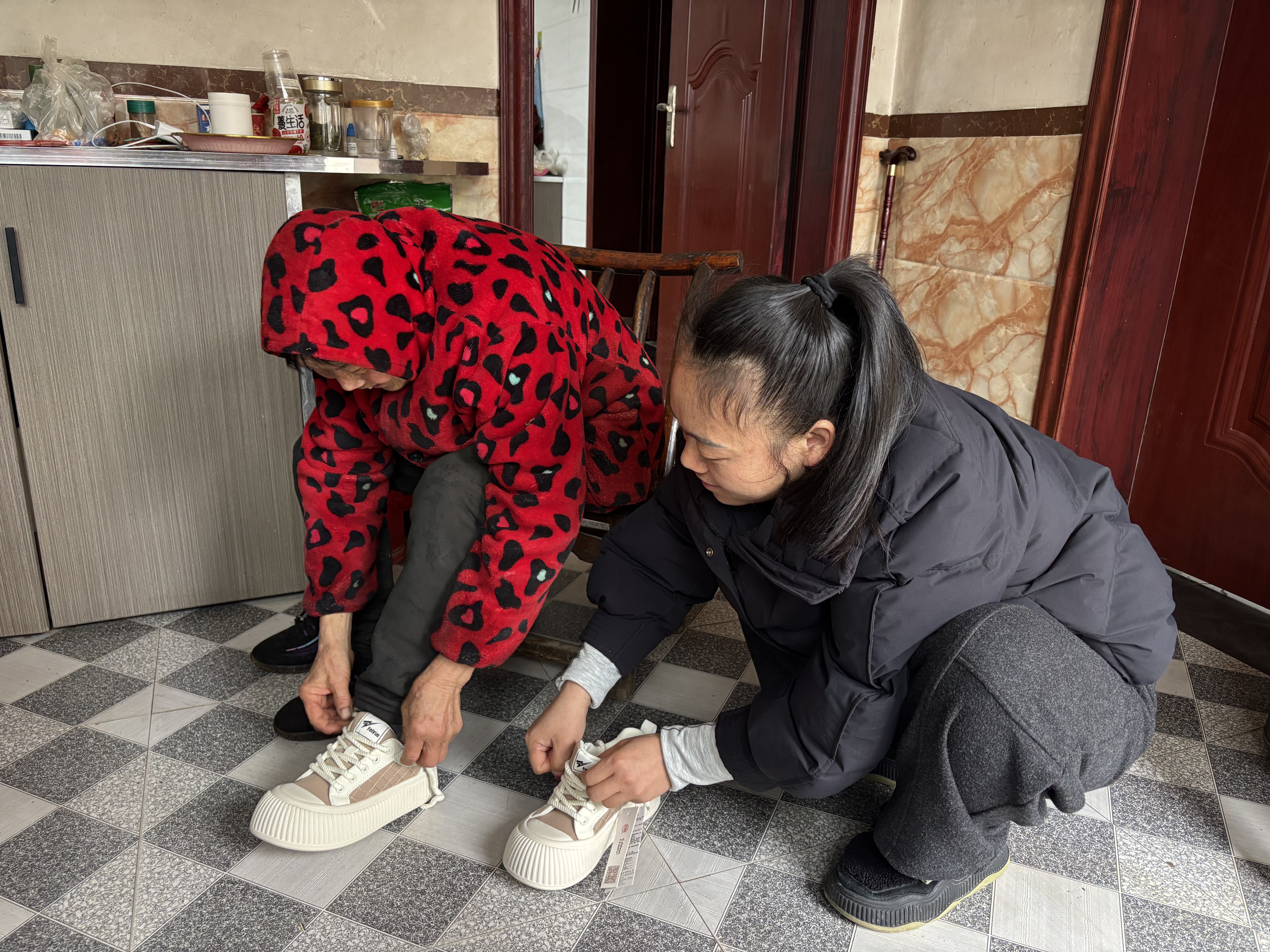 当日上午,村干部入户为村里10名特殊群体妇女送上一双双崭新舒适的鞋子,把温暖与关爱送到她们心坎上。在送鞋过程中,与大家面对面拉家常、问冷暖,细心询问她们的身体状况、生活需求和实际困难,耐心倾听心声,鼓励她们保持乐观积极的生活态度,用笑容面对生活,用坚强迎接美好。