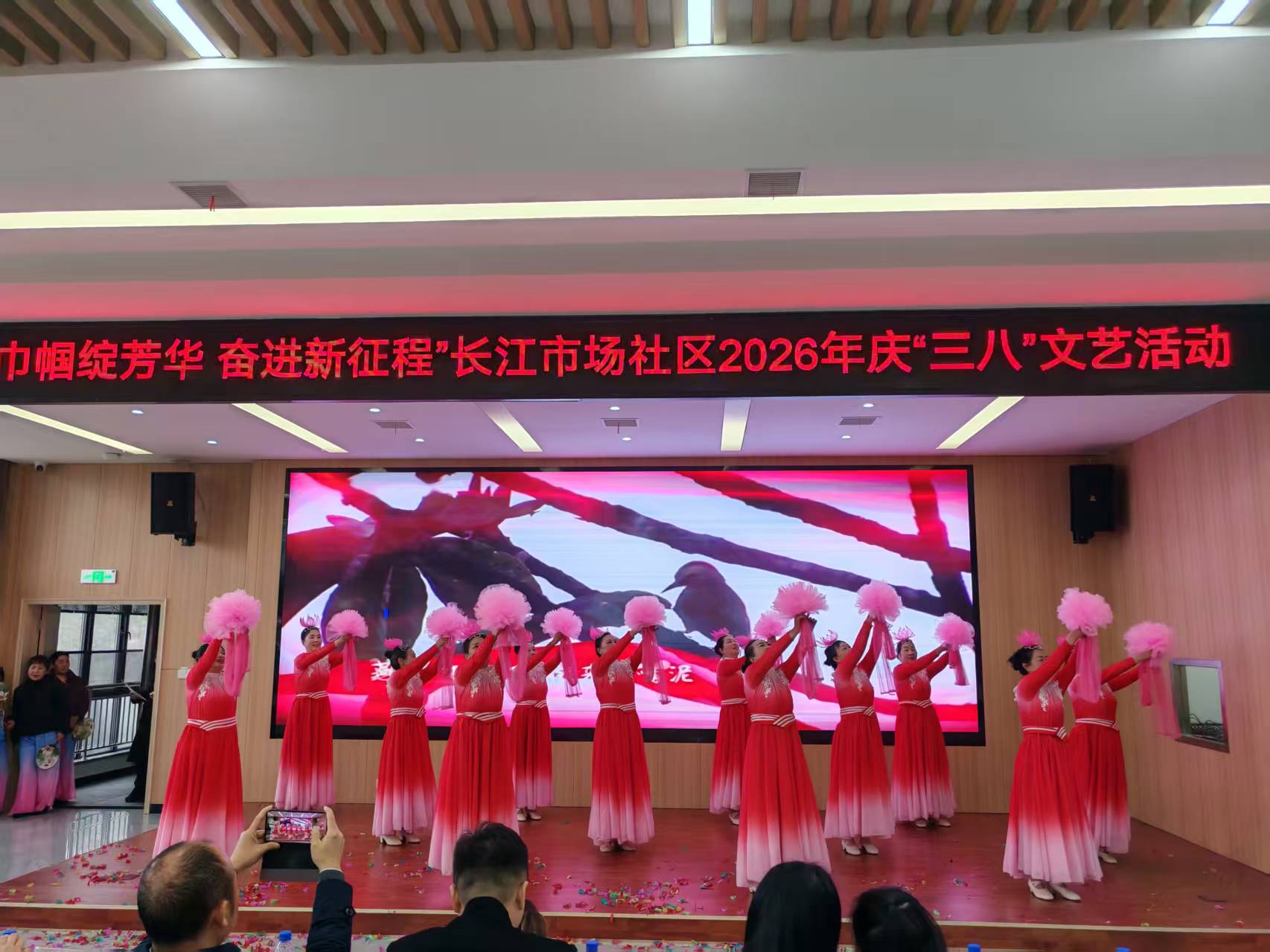 社区党委向全体辖区女性致以诚挚祝福,高度肯定她们在社区建设、家庭和睦中的 “半边天” 作用。文艺展演环节,舞蹈、歌唱、情景剧等节目轮番登场,演员们以饱满热情展现新时代女性的昂扬风貌,精彩表演赢得现场阵阵掌声。