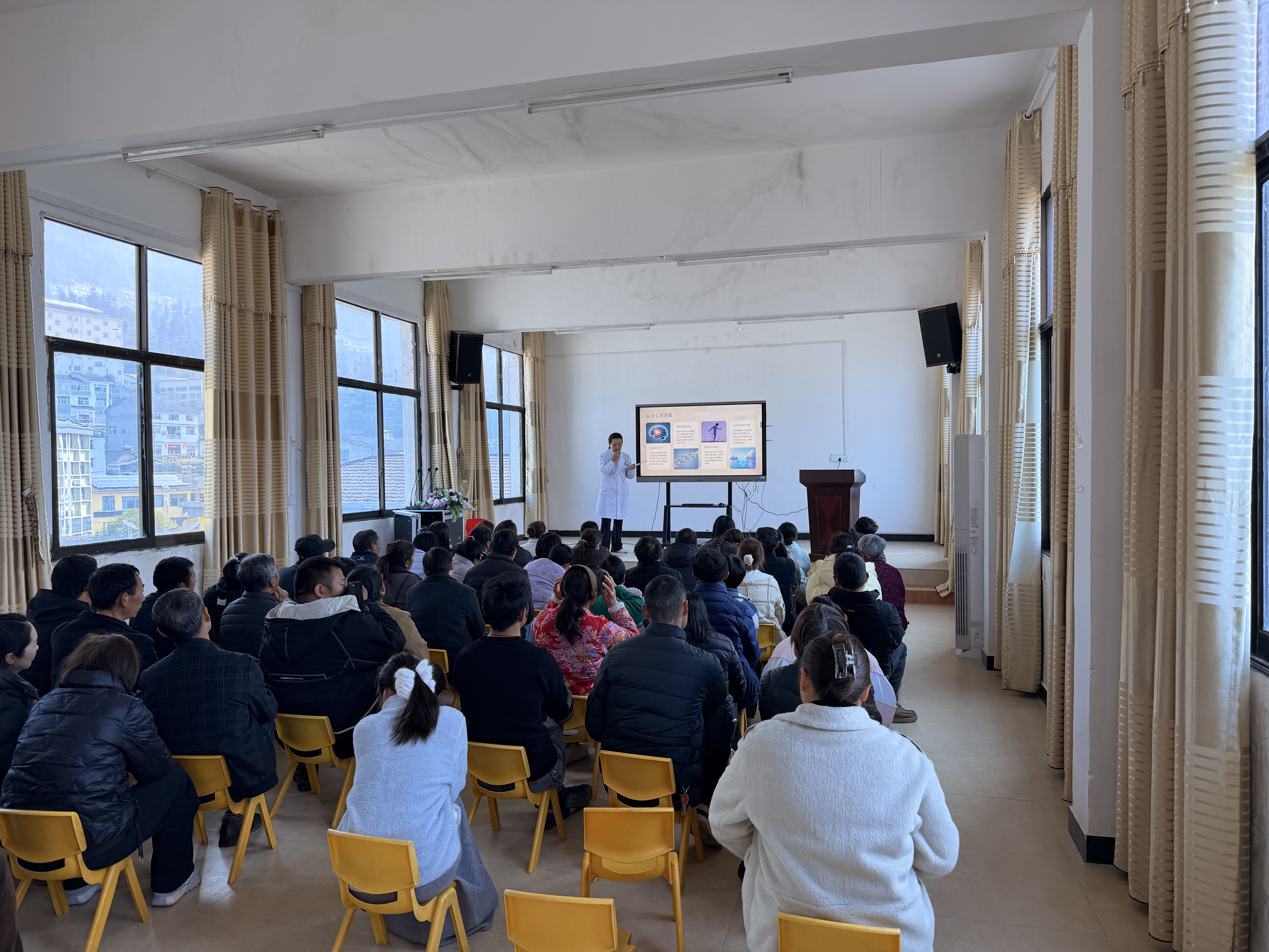 讲座现场,儿童保健医生结合幼儿年龄特点与成长需求,用通俗易懂、生动有趣的语言为家长和孩子们带来实用的健康知识。在儿童心理行为发育专题中,重点讲解幼儿情绪管理、行为引导、社交能力培养等核心内容,帮助家长科学认识儿童发育规律,掌握家庭教养与沟通技巧,及时关注孩子心理健康。