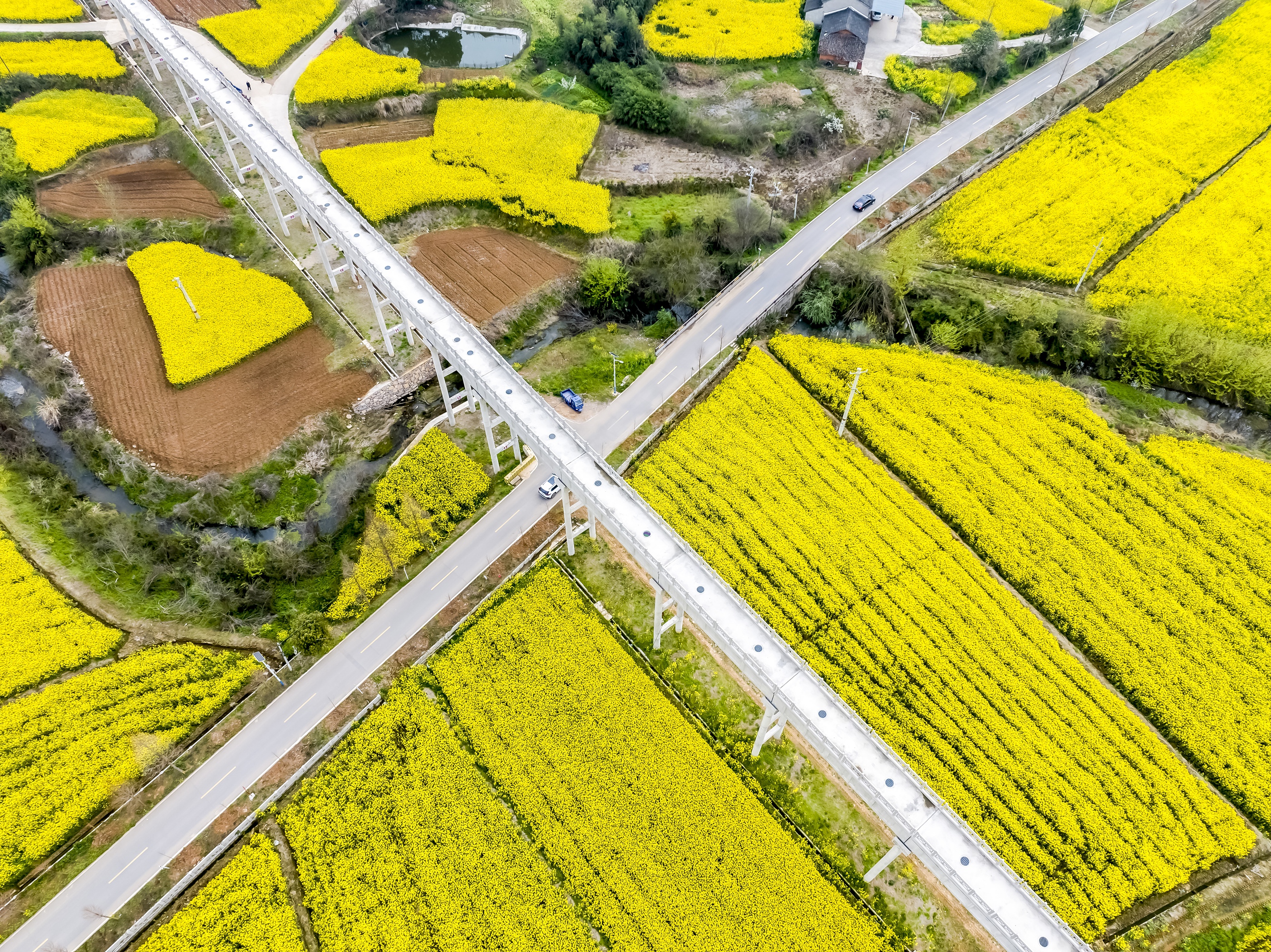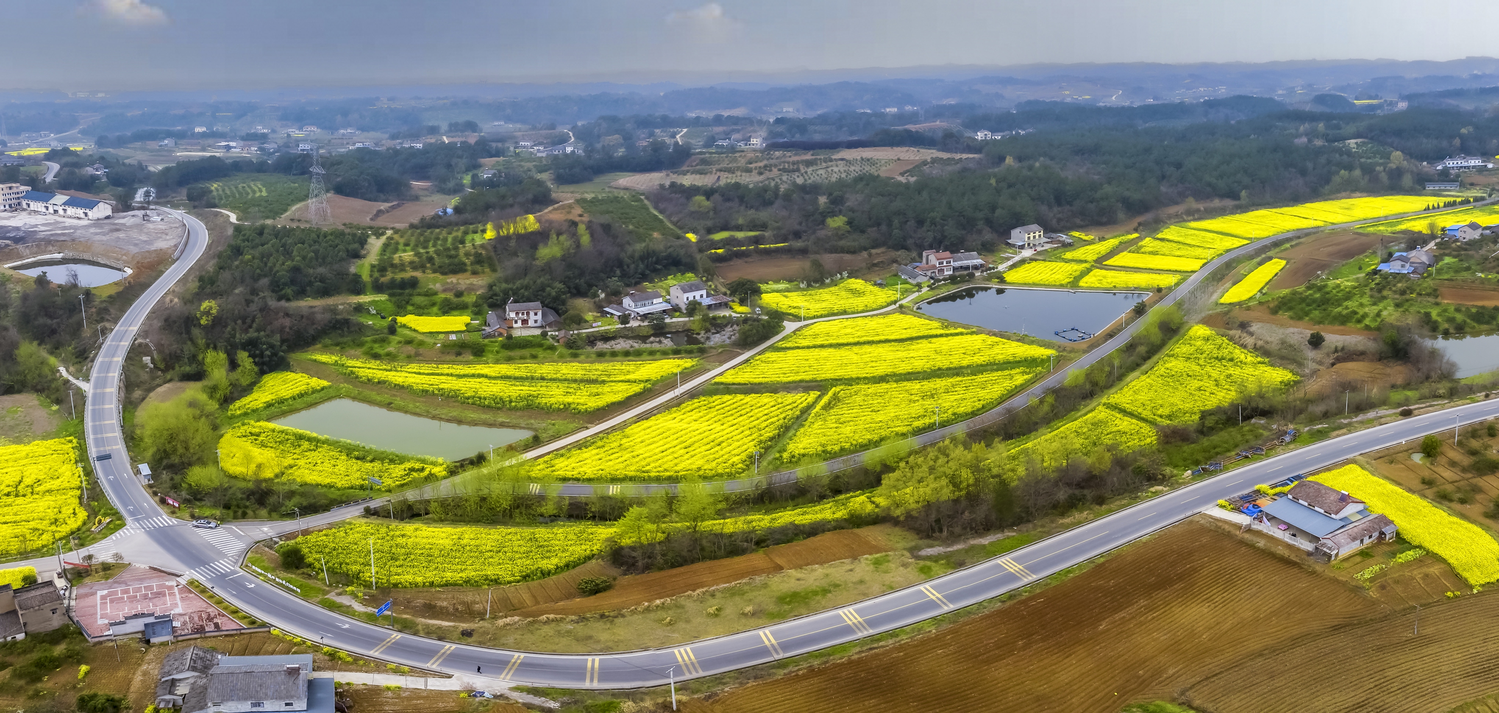 春暖花开时节,夷陵区鸦鹊岭镇满目金黄,千亩油菜花田次第绽放,与纵横交错的乡村公路、错落有致的民居、连片的柑橘园相映成趣,勾勒出一幅生机盎然的春日乡村画卷。