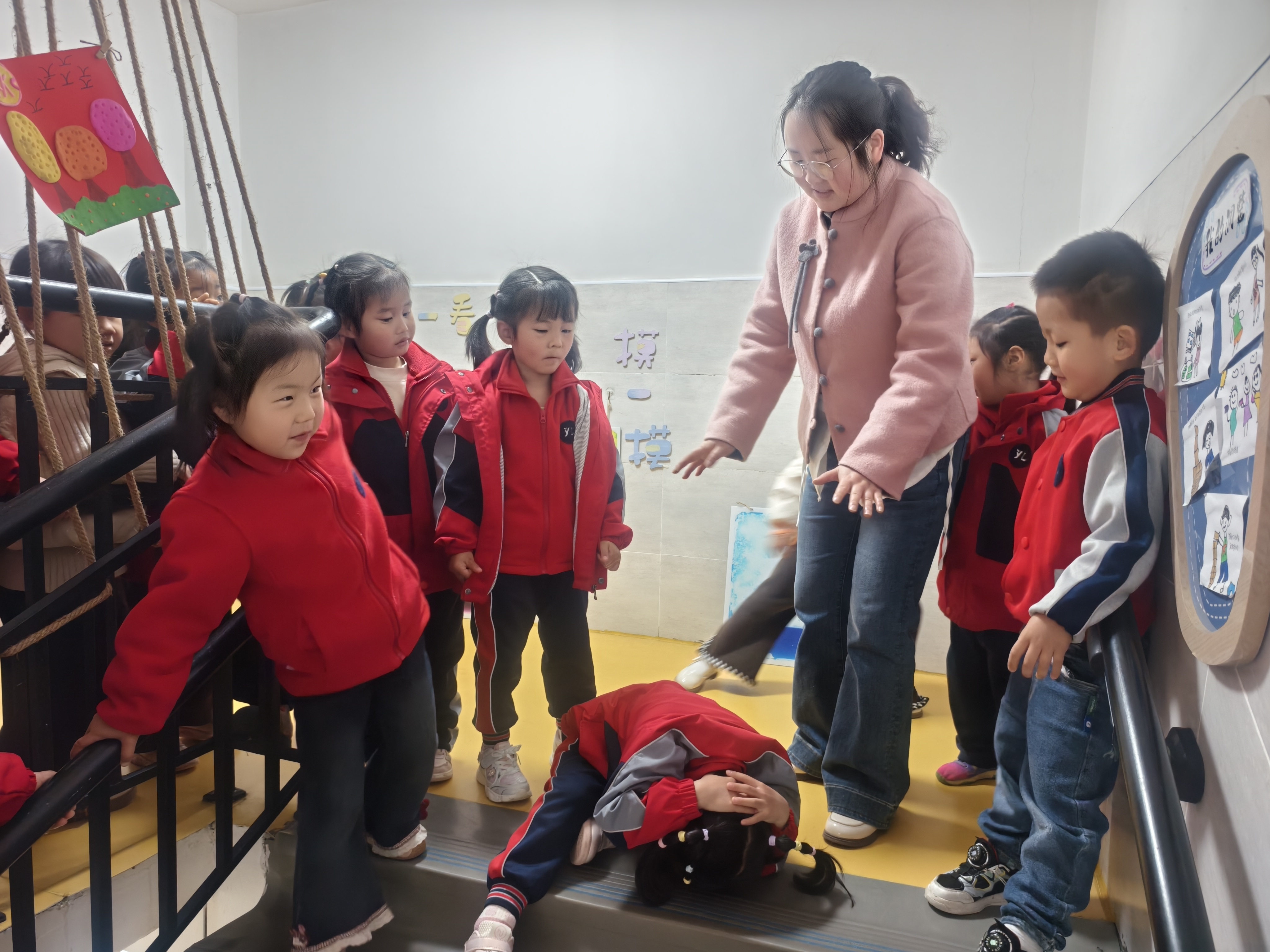 演练前,各班教师结合幼儿年龄特点,通过图片、视频演示、现场演练等方式,生动讲解踩踏事故预防要点、紧急自我保护技巧,重点强调“靠右行走、不推挤”原则,让幼儿清晰掌握安全知识。