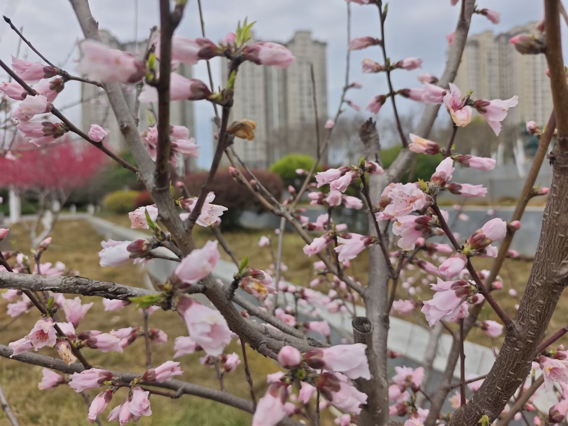 故乡的桃花,总是开得最热烈。漫山遍野的绯红,层层叠叠簇拥在枝头,不掺半点矫情,不施半分粉黛,像极了少年人藏不住的赤诚心事,洒脱又带着几分独有的孤傲风骨。俯身轻轻靠近,鼻尖凑近那娇嫩的花瓣,深深吸一口气,春日的气息便瞬间盈满口鼻。那是桃花清甜的香,混着泥土被暖阳晒透的温润,是草木刚刚苏醒的清新,还有微风裹着的淡淡暖意,是独属于乡野春日,最踏实也最动人的味道。一旁的樱桃树,枝头上缀满了鼓鼓的花骨朵,粉白相间,像攥着一把把细碎的星光,藏着满满的期待。风轻轻一吹,便有零星的花瓣悠悠飘落,带着袅袅的香气,轻轻柔柔落在肩头,缠缠绵绵不肯离去,这份浪漫、这份怡人、这份温馨,悄无声息地揉进了春日的每一寸时光里,刻进了记忆深处。