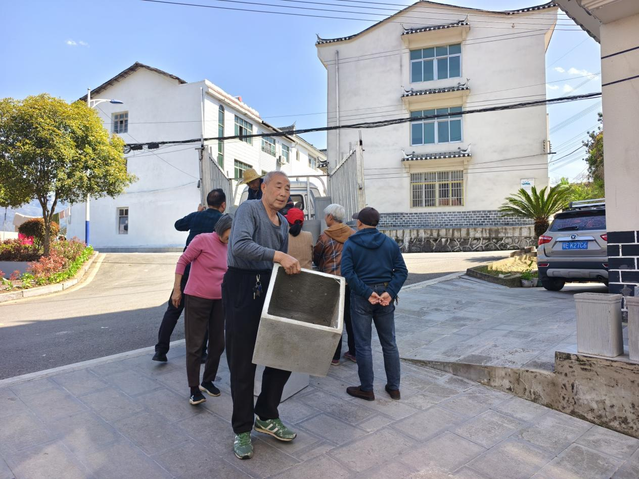 “给你们点赞,发完花箱发花苗,还帮我们运来了种植土,真是一条龙服务!”刘大妈看着家门口刚种下的绣球花苗,笑得合不拢嘴,“我们年纪大了都弄不动泥土了,村里想得真周到。