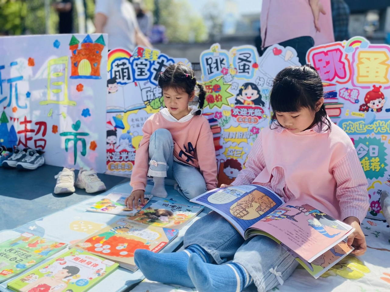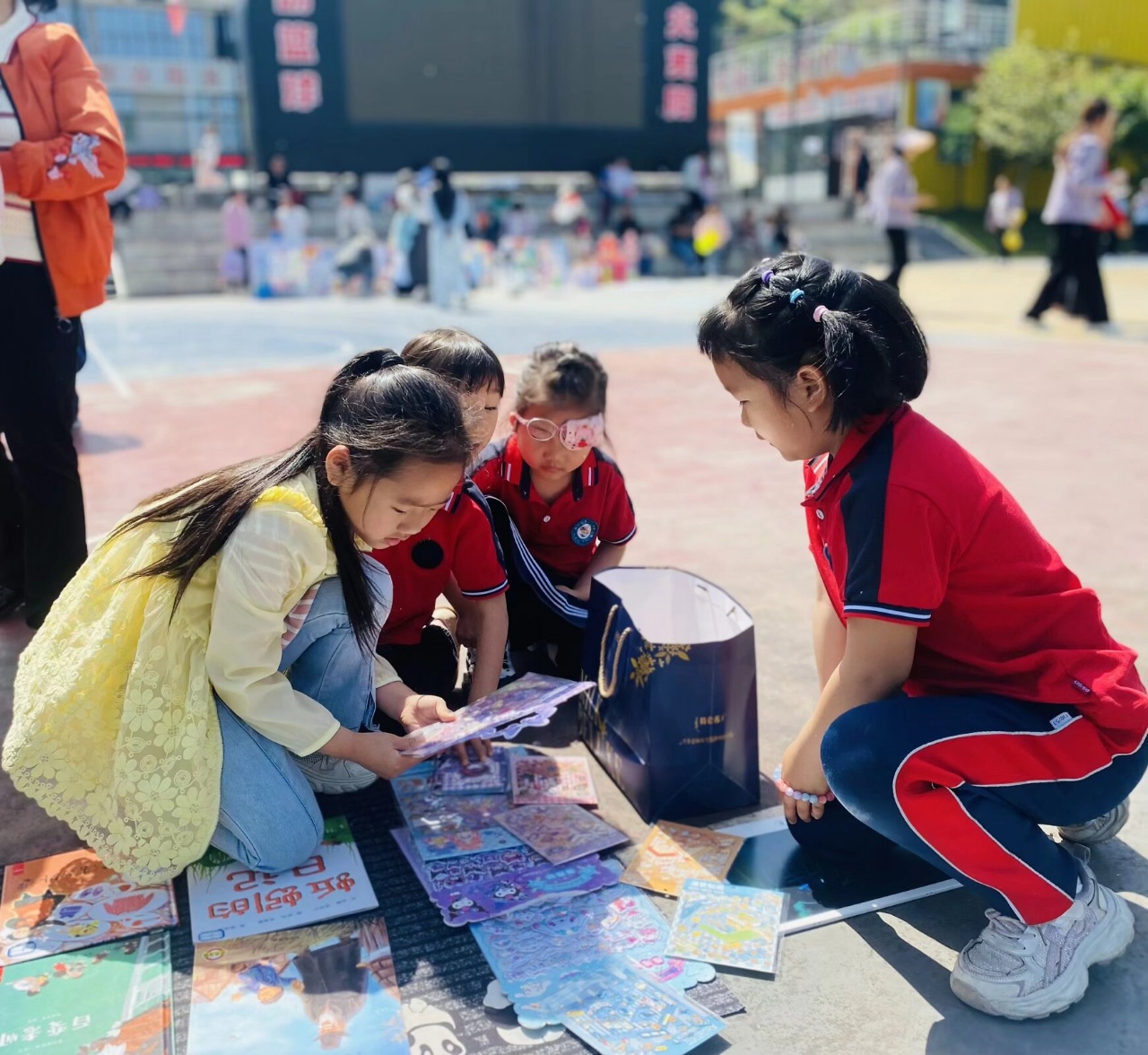 图书跳蚤市场热闹非凡。孩子们化身“小小摊主”,带着闲置绘本热情地向同伴介绍、交换心爱书籍,在实践中锻炼沟通表达能力,培养分享意识与社交能力,让闲置图书“活”起来,让书香在春日里流动。