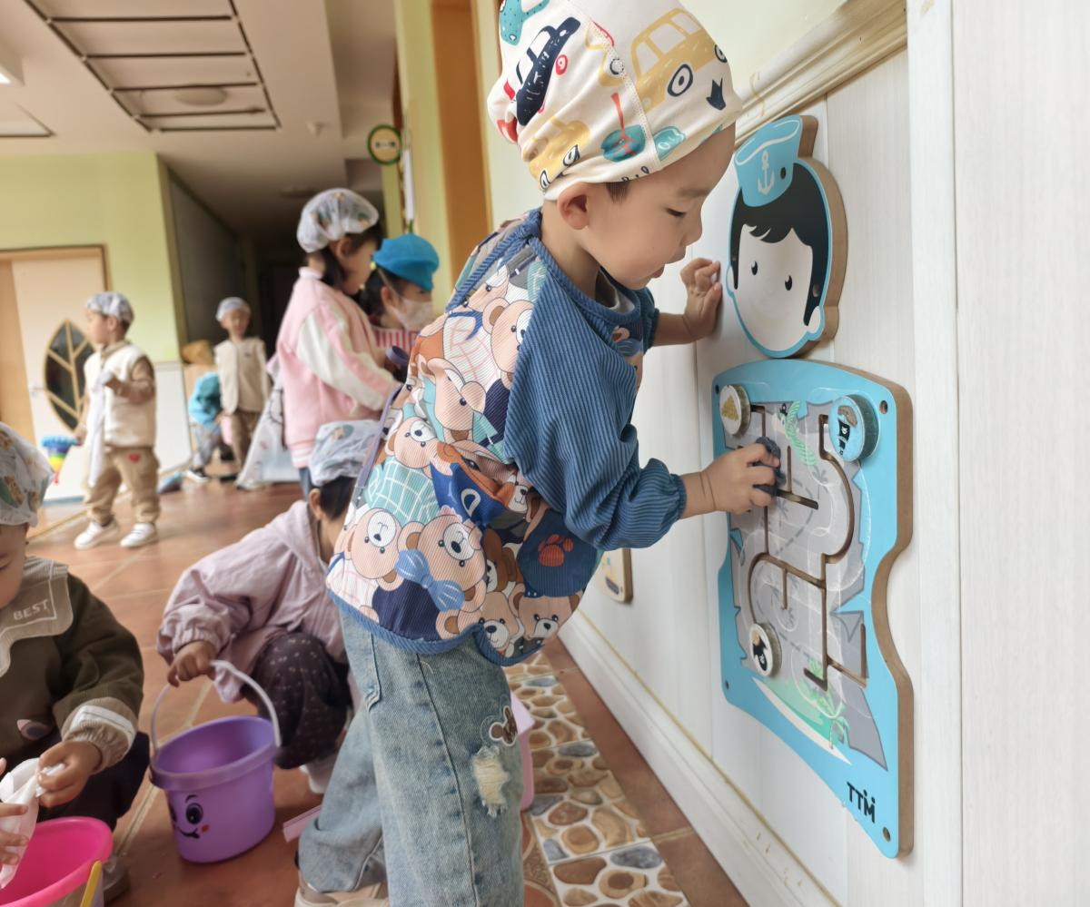 活动中,孩子们分别擦拭所负责的区域,清理每一处角落,同时清扫地面以及整理物品。